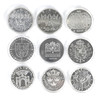 Mynt i plastkassetter.