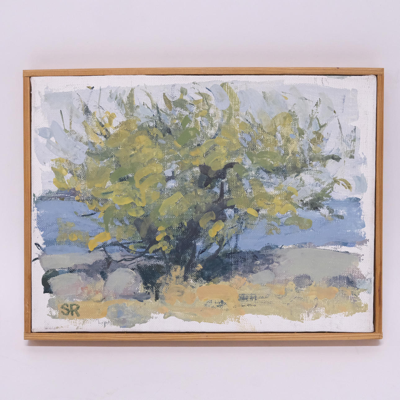 Landskap vid vatten, mått 20 x 27 cm, rammått 21,5 x 28,5 cm, monogramsignerad.