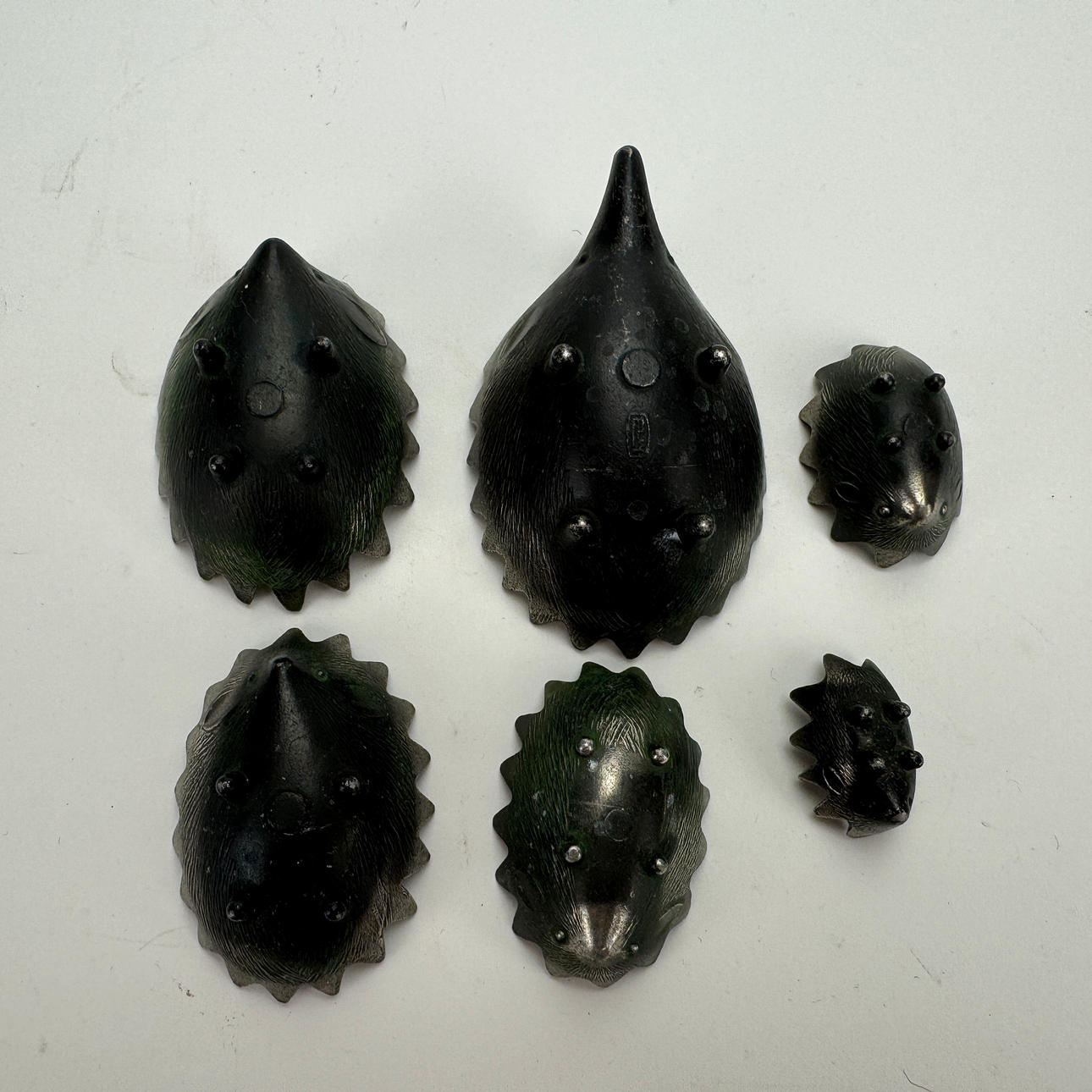 Igelkott, 6 delar, längd ca. 12 cm.