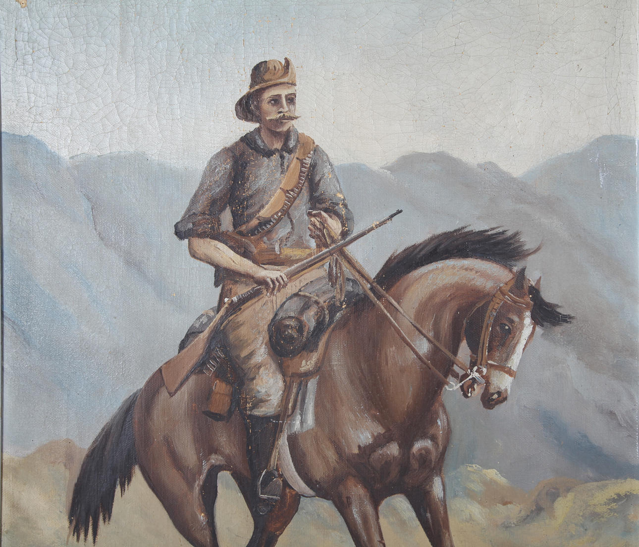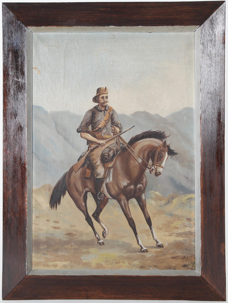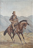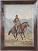 Olja på duk, man till häst. Signatur nedan höger, otydlig. Ramens mått 98 x 74 cm.