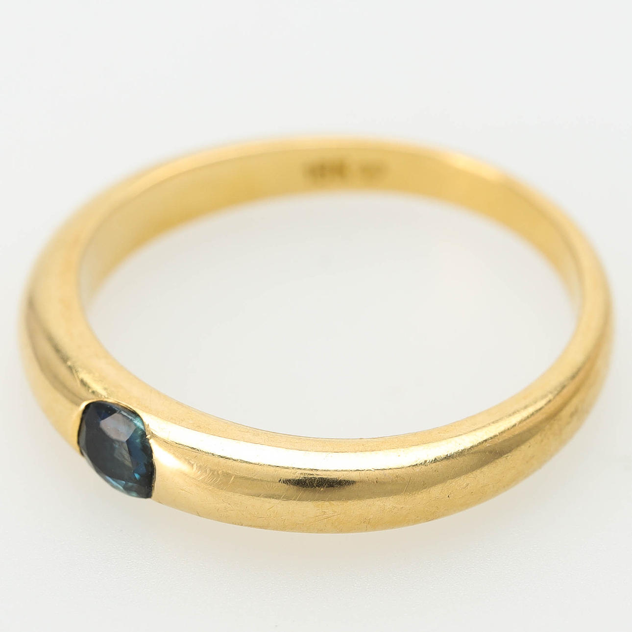 Bruksslitage, skenan skev, safiren lös i fattning.