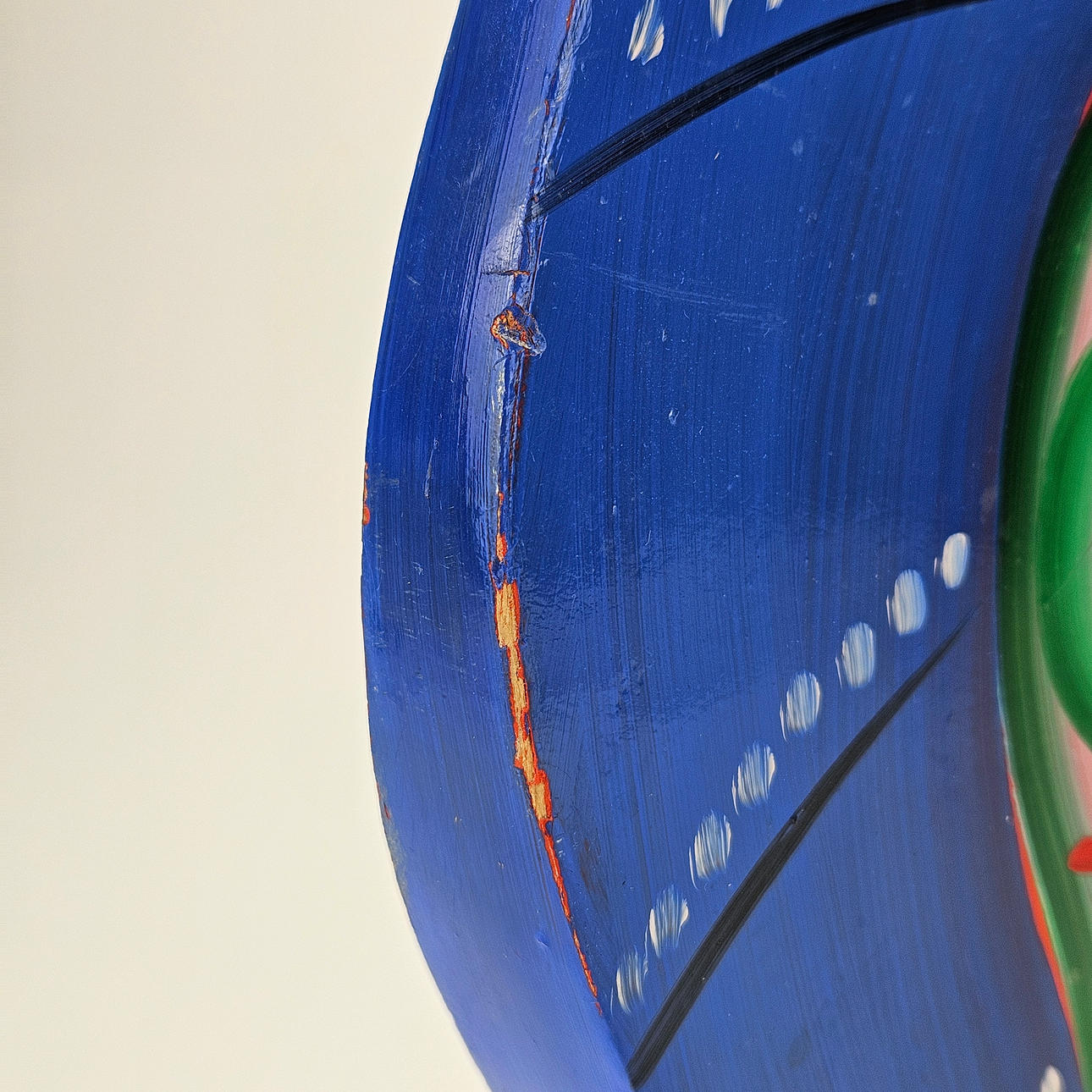 Färgbortfall, mindre spricka.