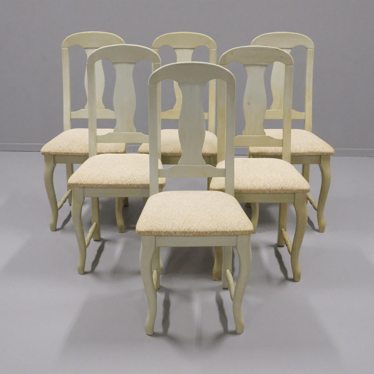 Sex stolar, höjd 100cm, sitthöjd 47cm, bredd 44cm.
