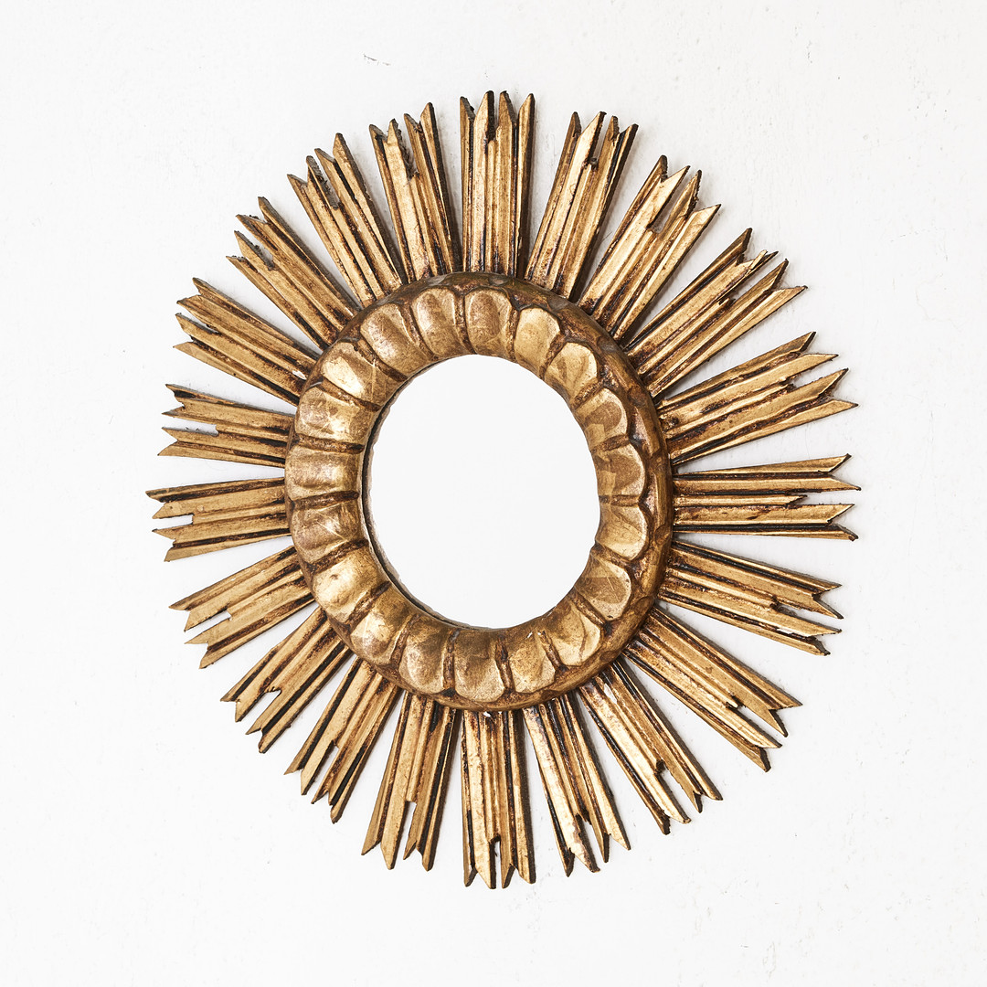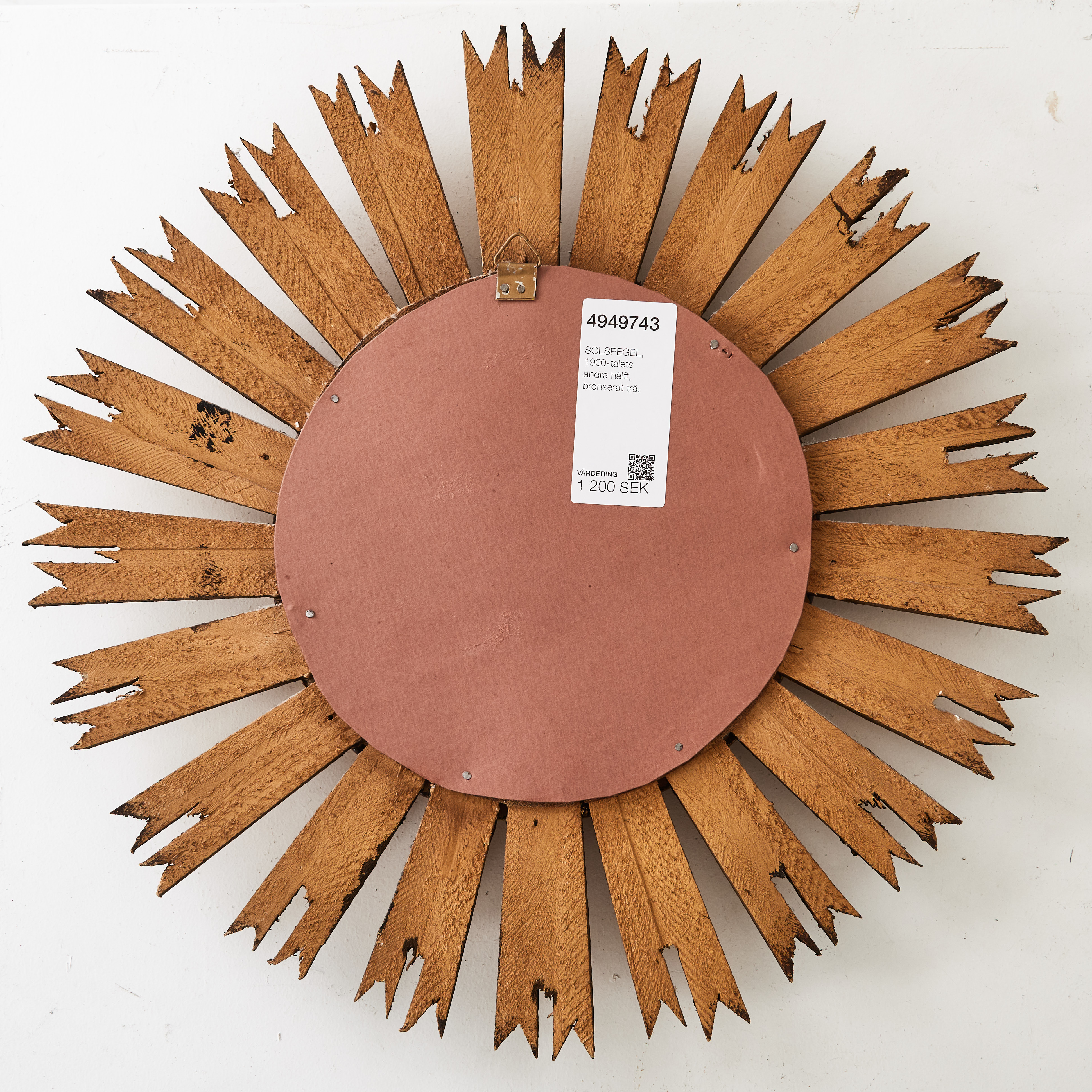 4949743. SOLSPEGEL, 1900-talets andra hälft, bronserat trä.