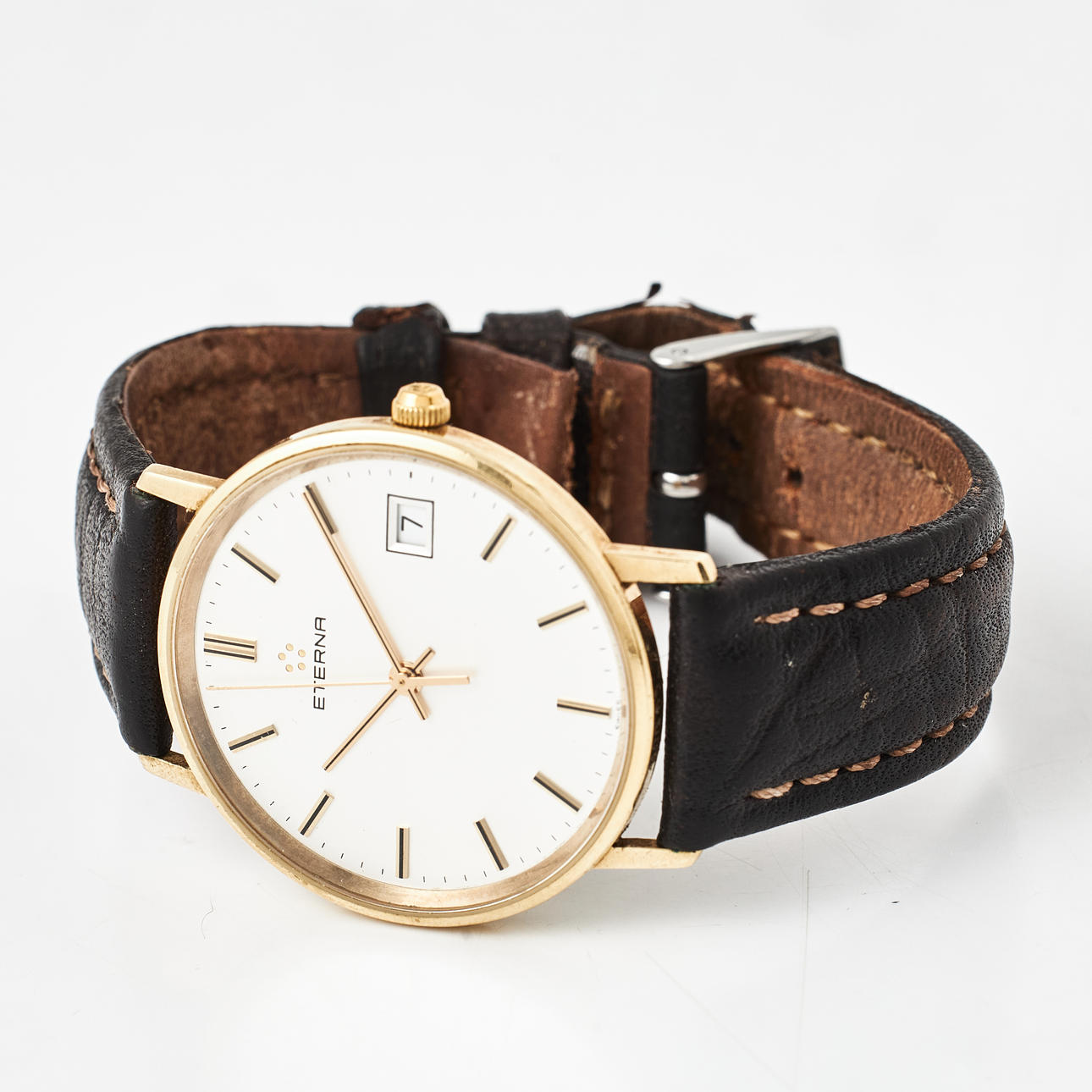 quartz, safirglas, datum, läderband. Referensnr 4100.65.
