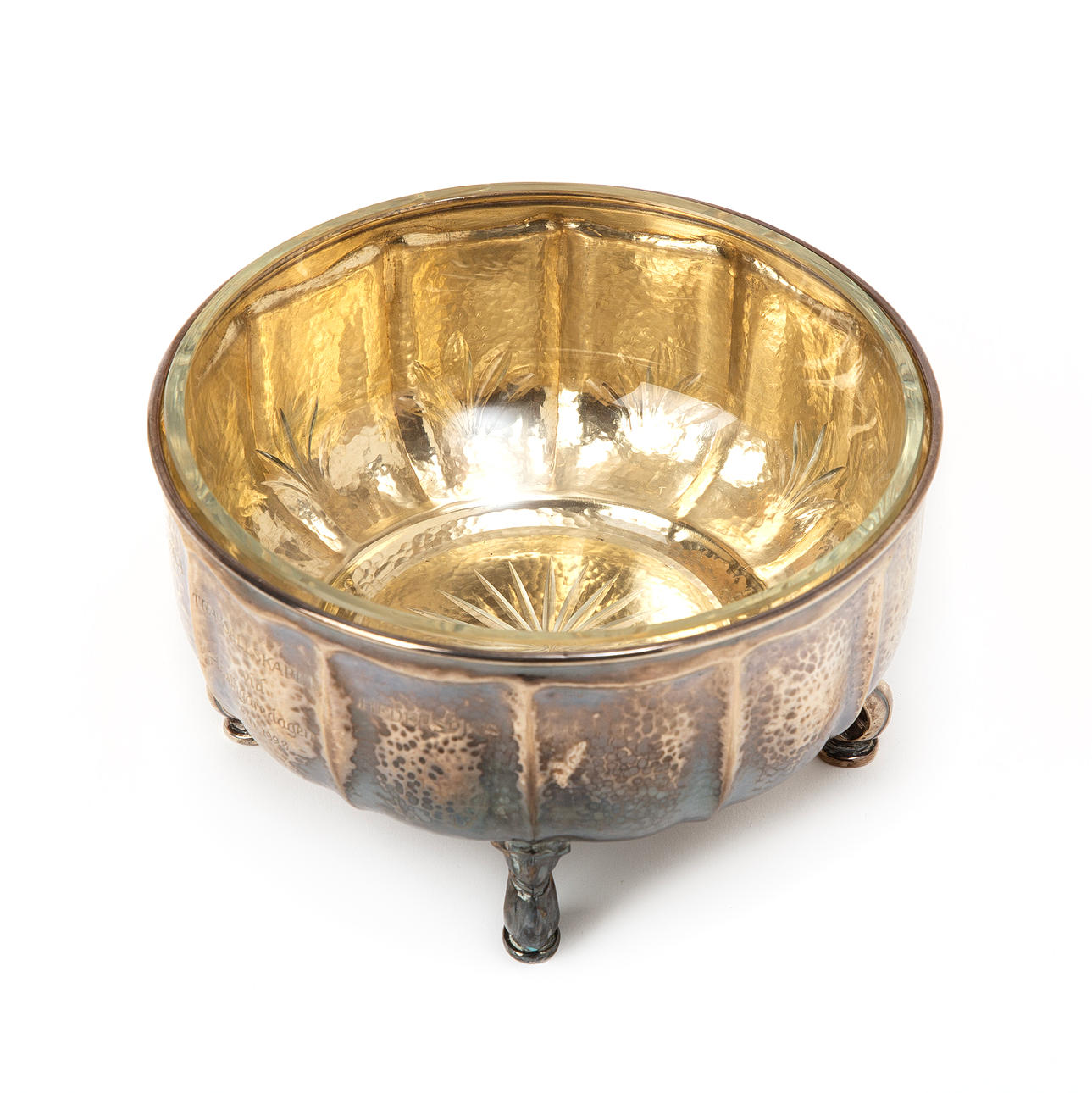 Skål på fyra fötter med glasinsats.
