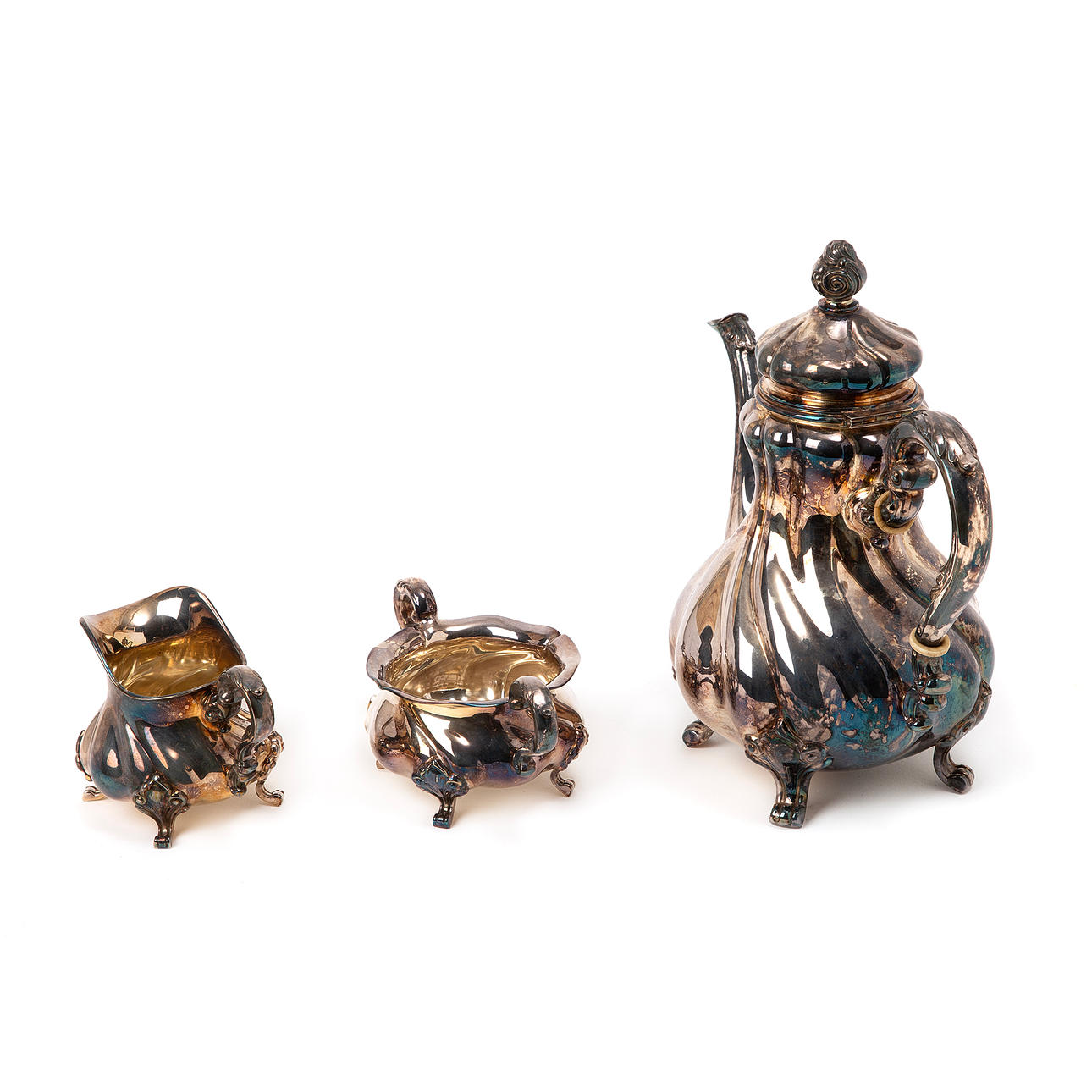 4950977. KAFFESERVIS. 3 delar, sterlingsilver, importstämplad.