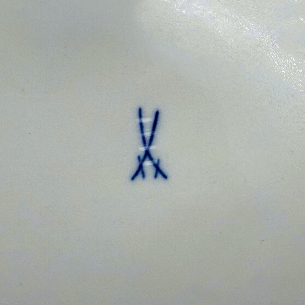 En rund serveringsplatta från porslinsfabriken i Meissen den 4: e val. Markerad på botten.