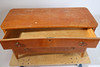 Märken, repor, fläckar, nedre lådan slagen. Ställvis med fanerskador.