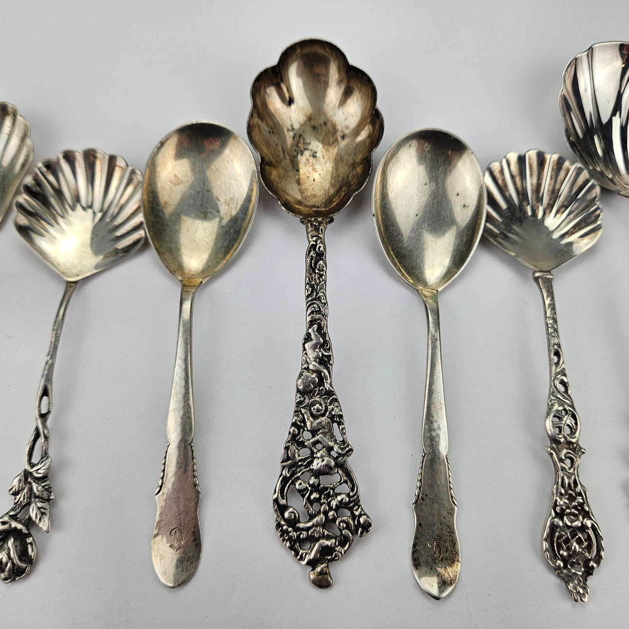 4951241. KOMPOTTSKEDAR, 7 st, silver, vikt ca. 147 gram.