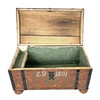 Drickamålad, trä, Välvt lock, monogram, järnbeslag.