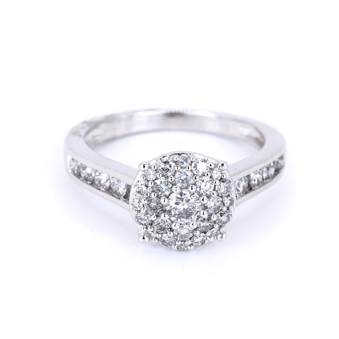 4952082. 18KT VITGULD DIAMANT UPPSATT KLUSTERRING.