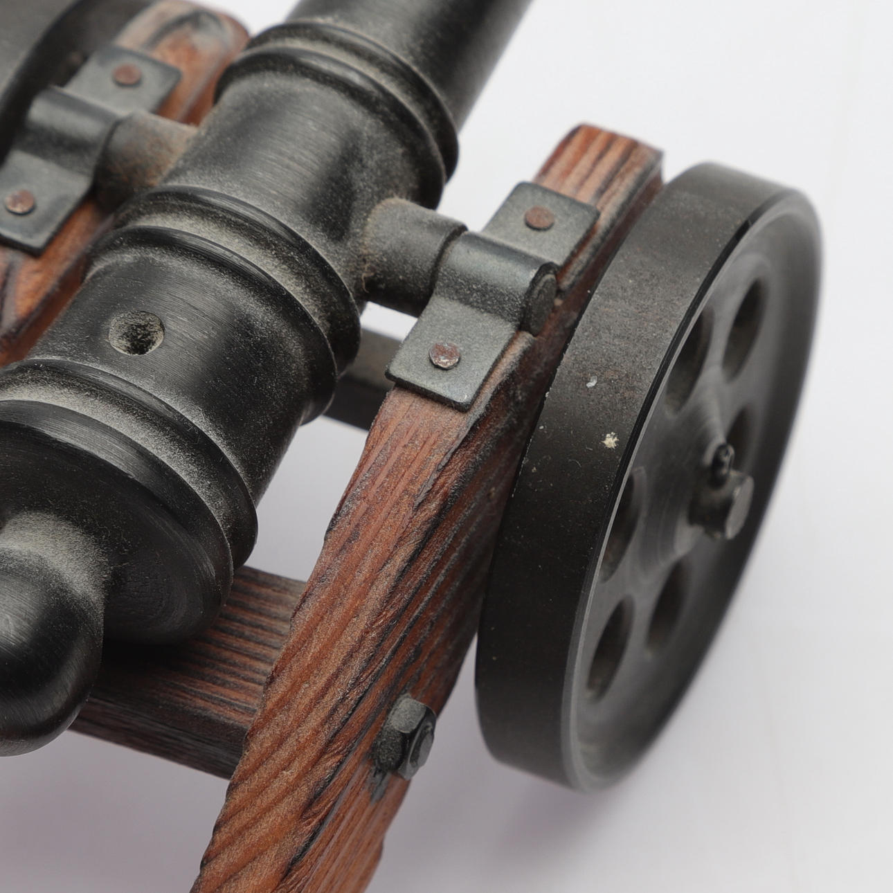 BORDSKANONER, 2 st, metall/trä, 1900-talets andra hälft.