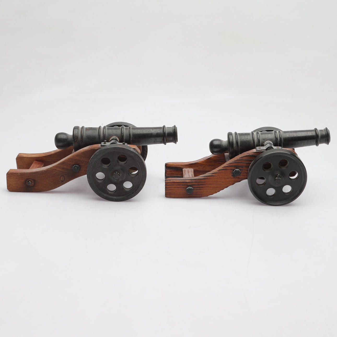 4952199. BORDSKANONER, 2 st, metall/trä, 1900-talets andra hälft.