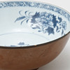 Dekor av blommor i underglasyrblått och café au laitglasyr. Diameter 21 cm.