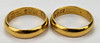 RINGAR, 2 st, guld, 23K, vikt ca. 9,9 gram.