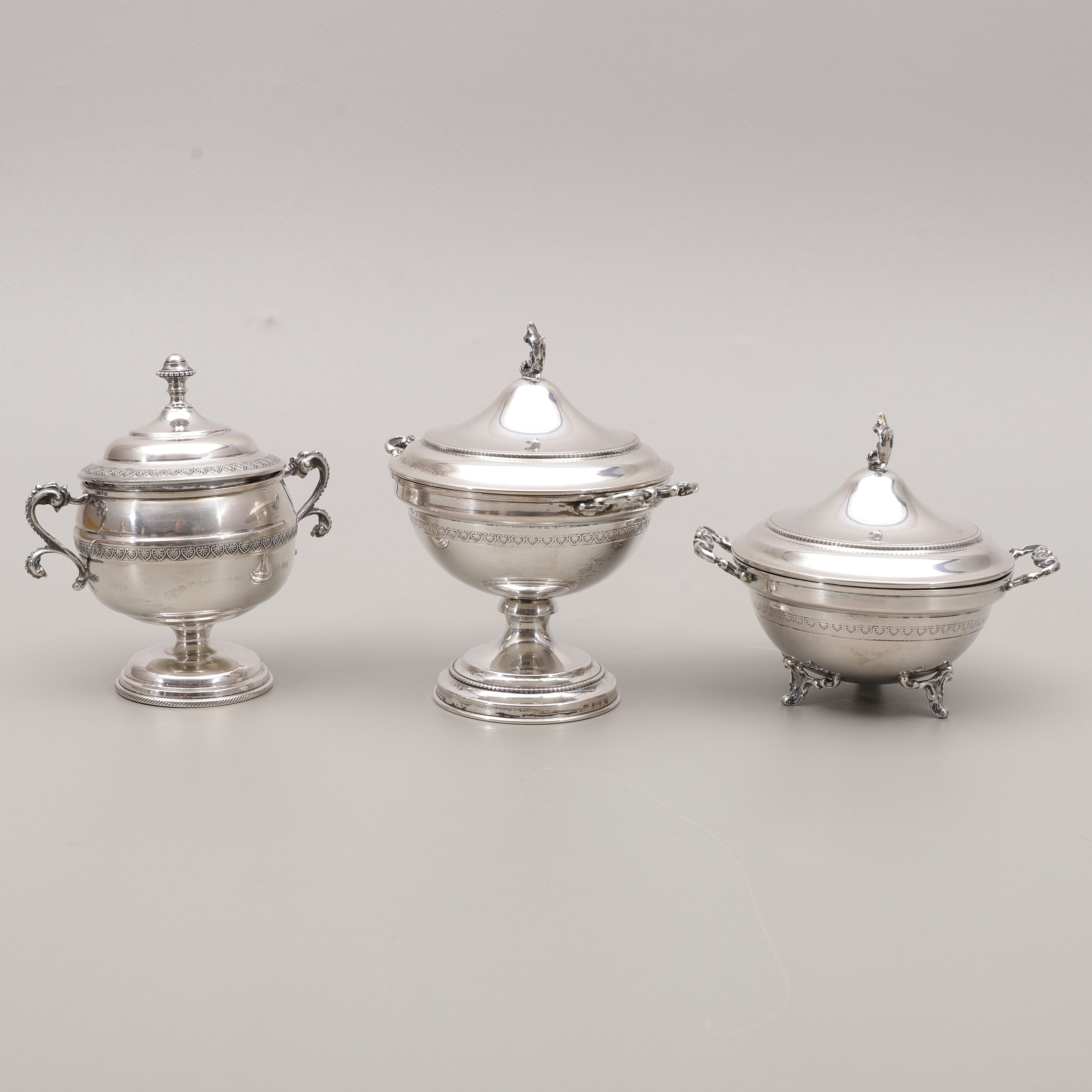 4952455. LOCKSKÅLAR, 3 st, silver, totalvikt 460 gram.