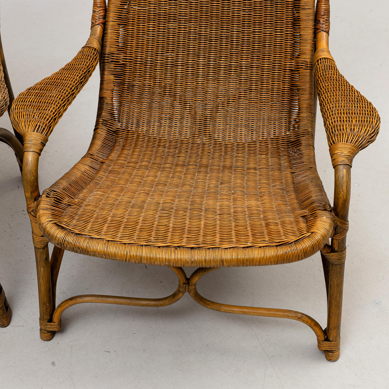 Slitage, fläckar, ej fullständigt genomgångna.