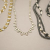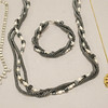 Trestängat collier och armband med pärlor, längd 18 cm och 60 cm.