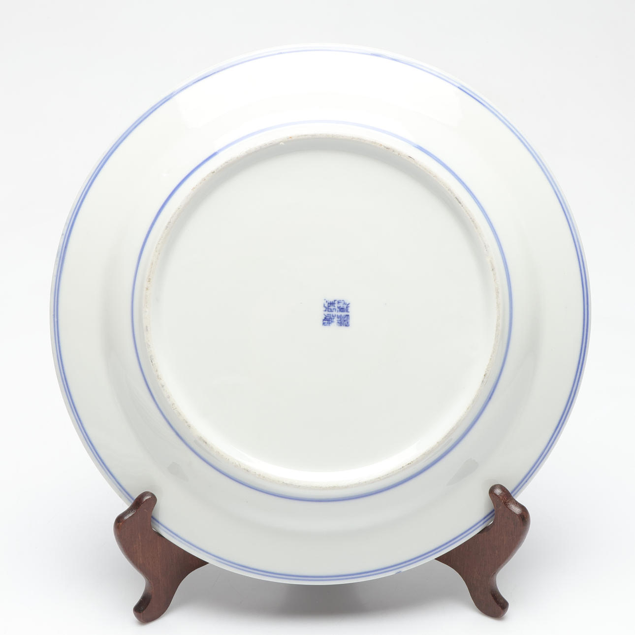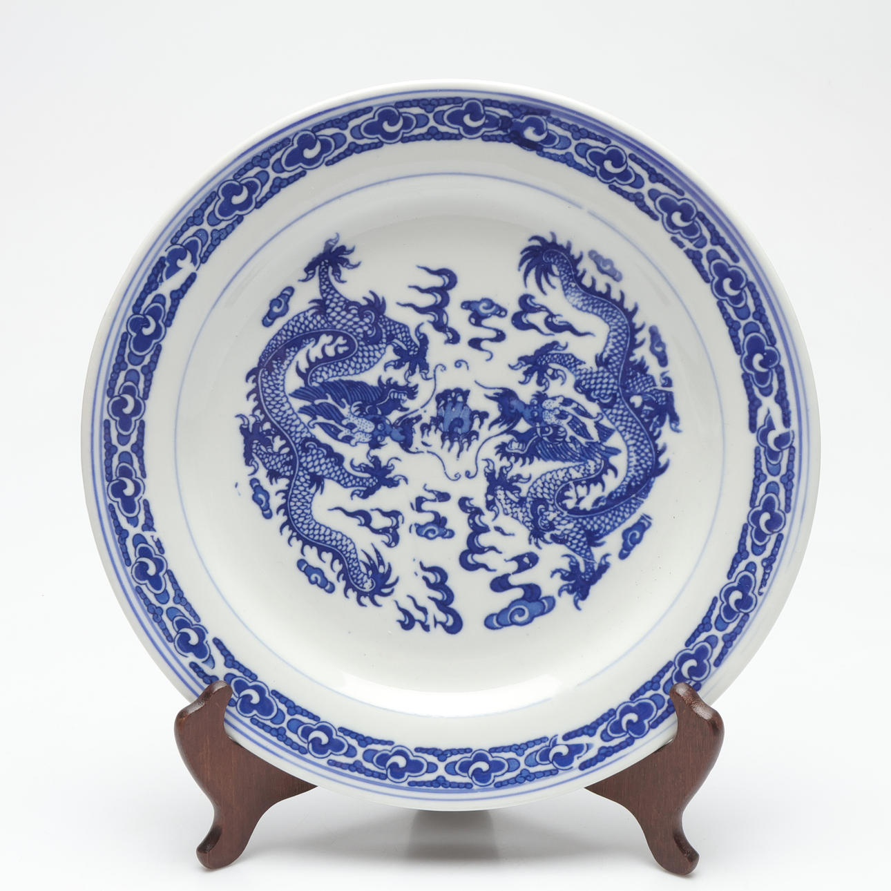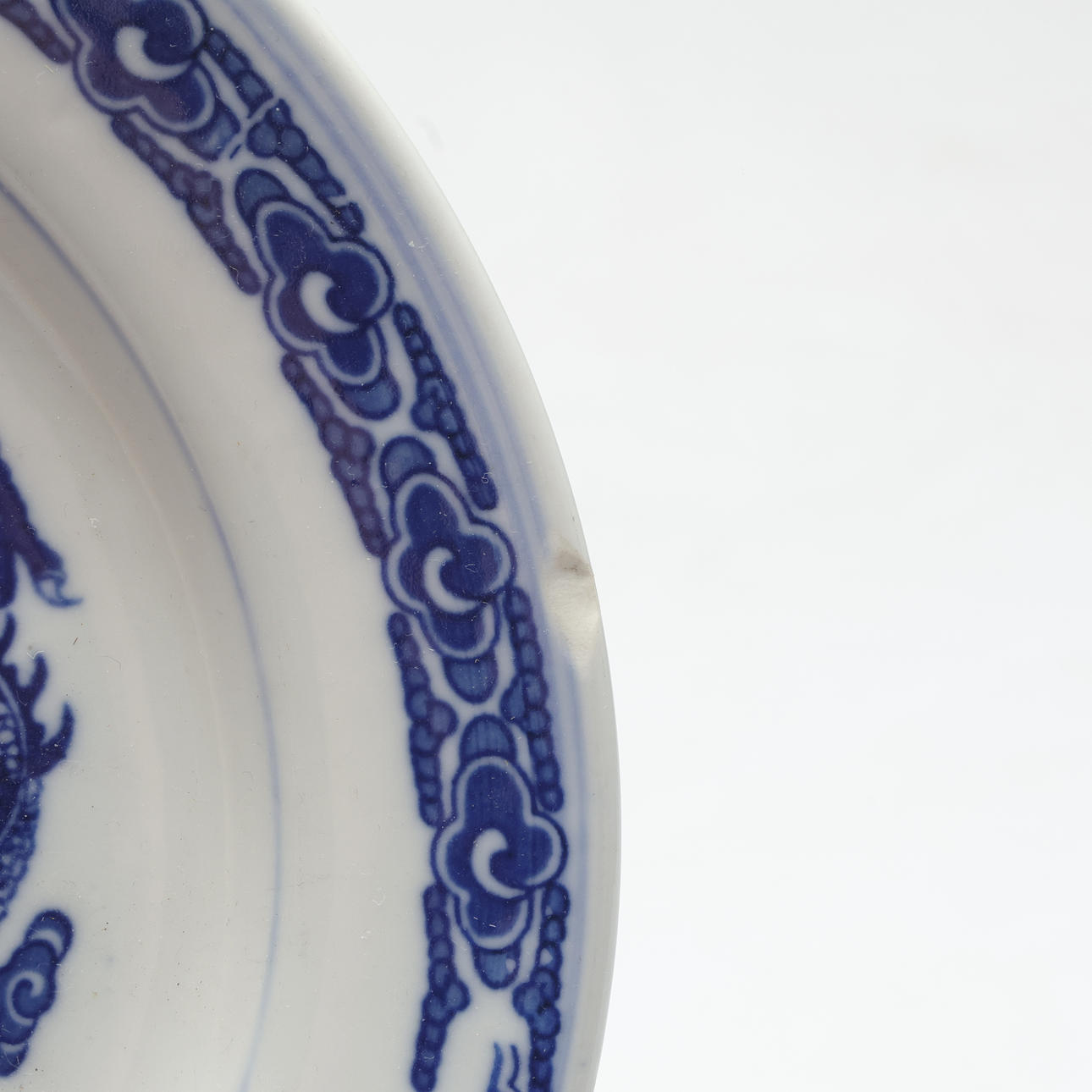 Dekor med blå drakar. Diameter ca 26 cm.