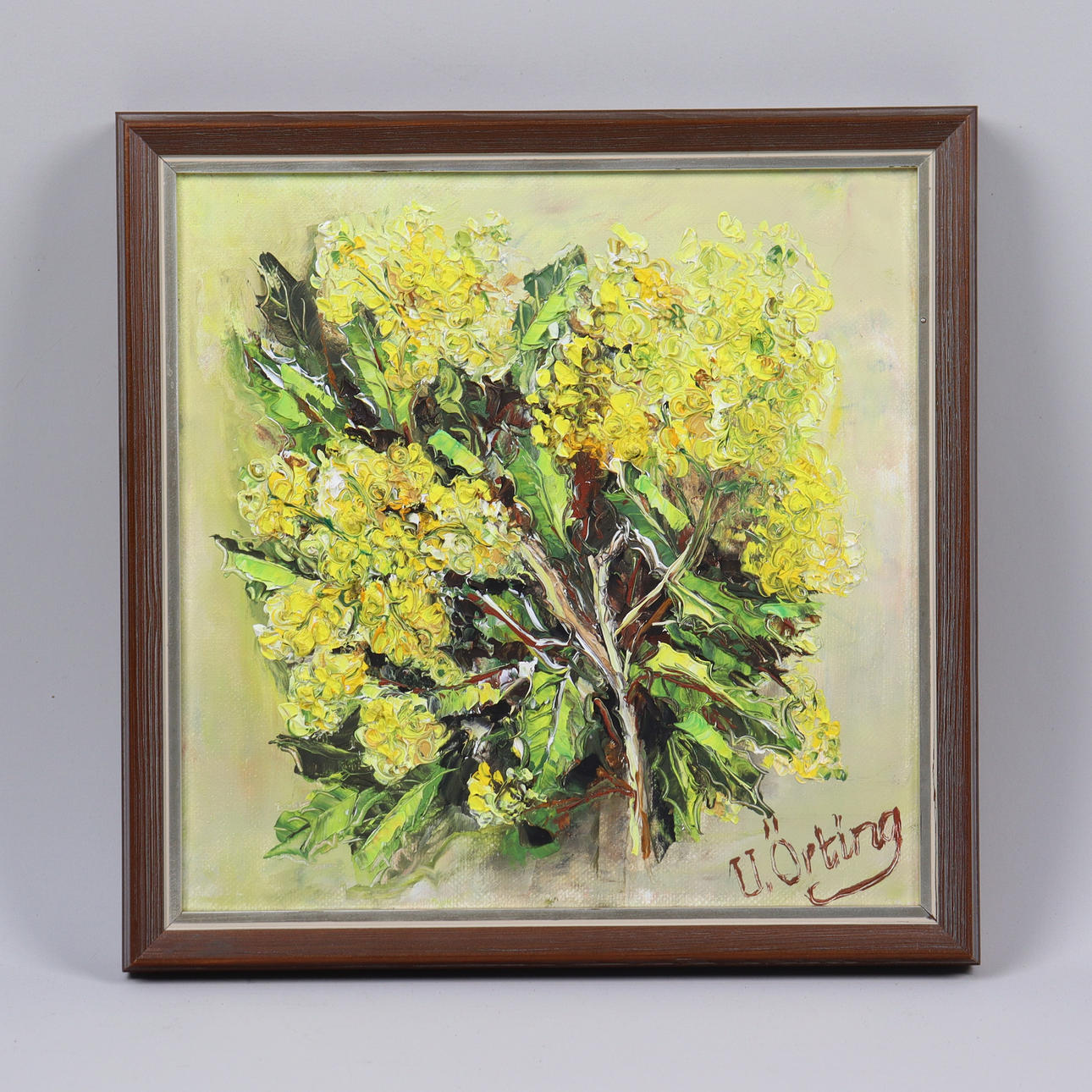 ULLA ÖRTING. olja på duk, "Mahonia i blom".