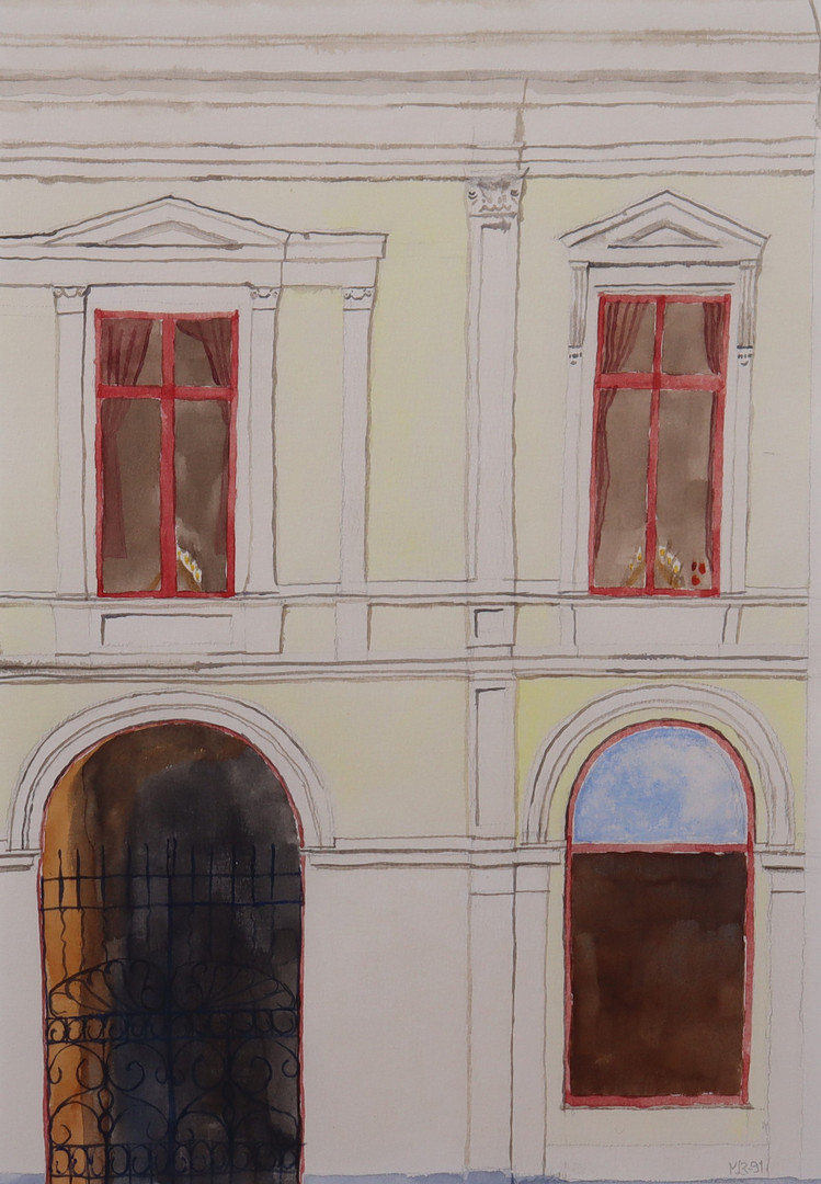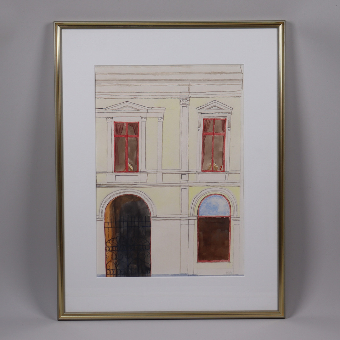 4954642. OIDENTIFIERAD KONSTNÄR. akvarell, husfasad.