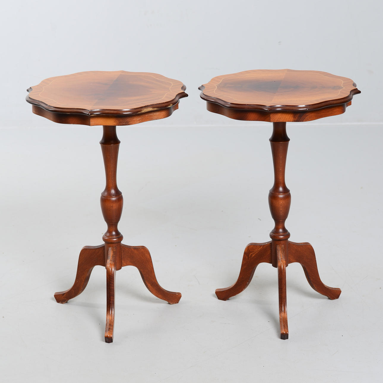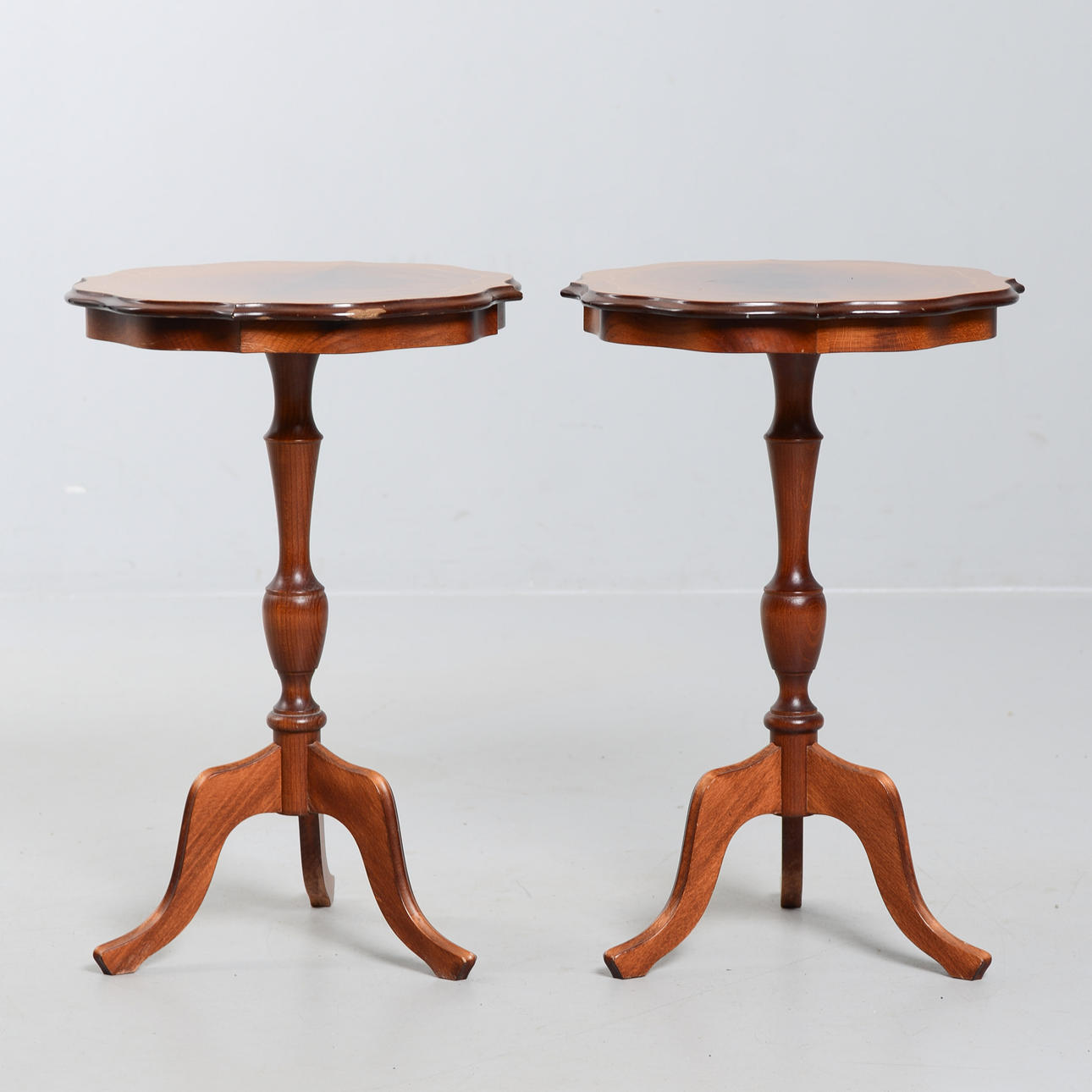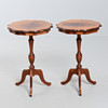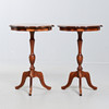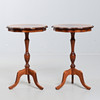 Två små pelarbord. Mått: 59 x 40 cm.