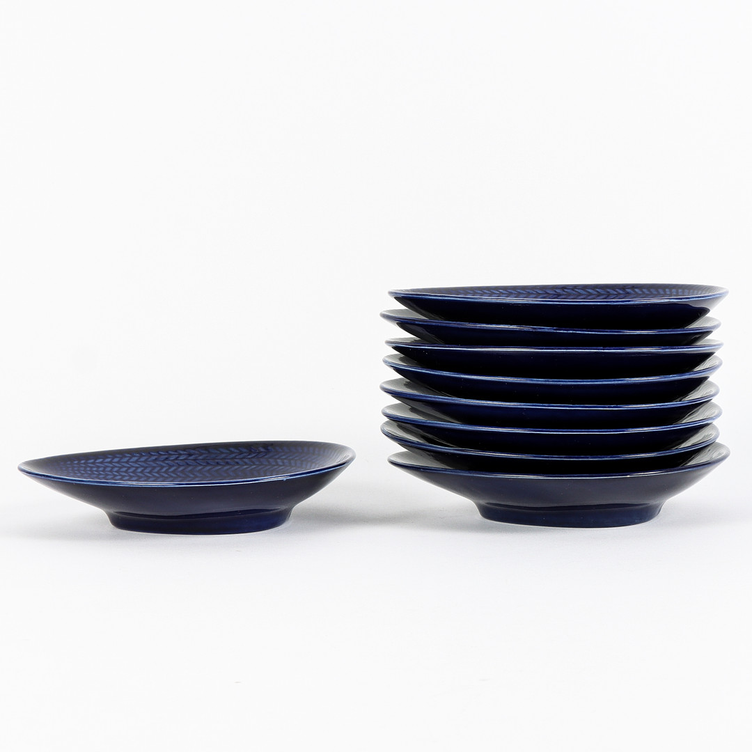 4955071. HERTHA BENGTSON. Fat, 9 stycken, Rörstrand, Blå Eld.
