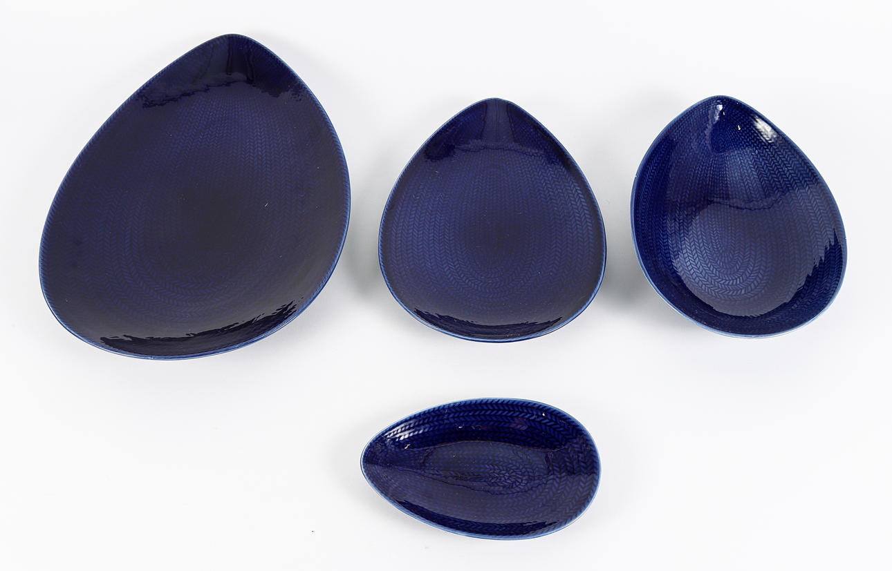 4955107. HERTHA BENGTSON. Serveringsfat 4 stycken, Rörstrand, Blå Eld.