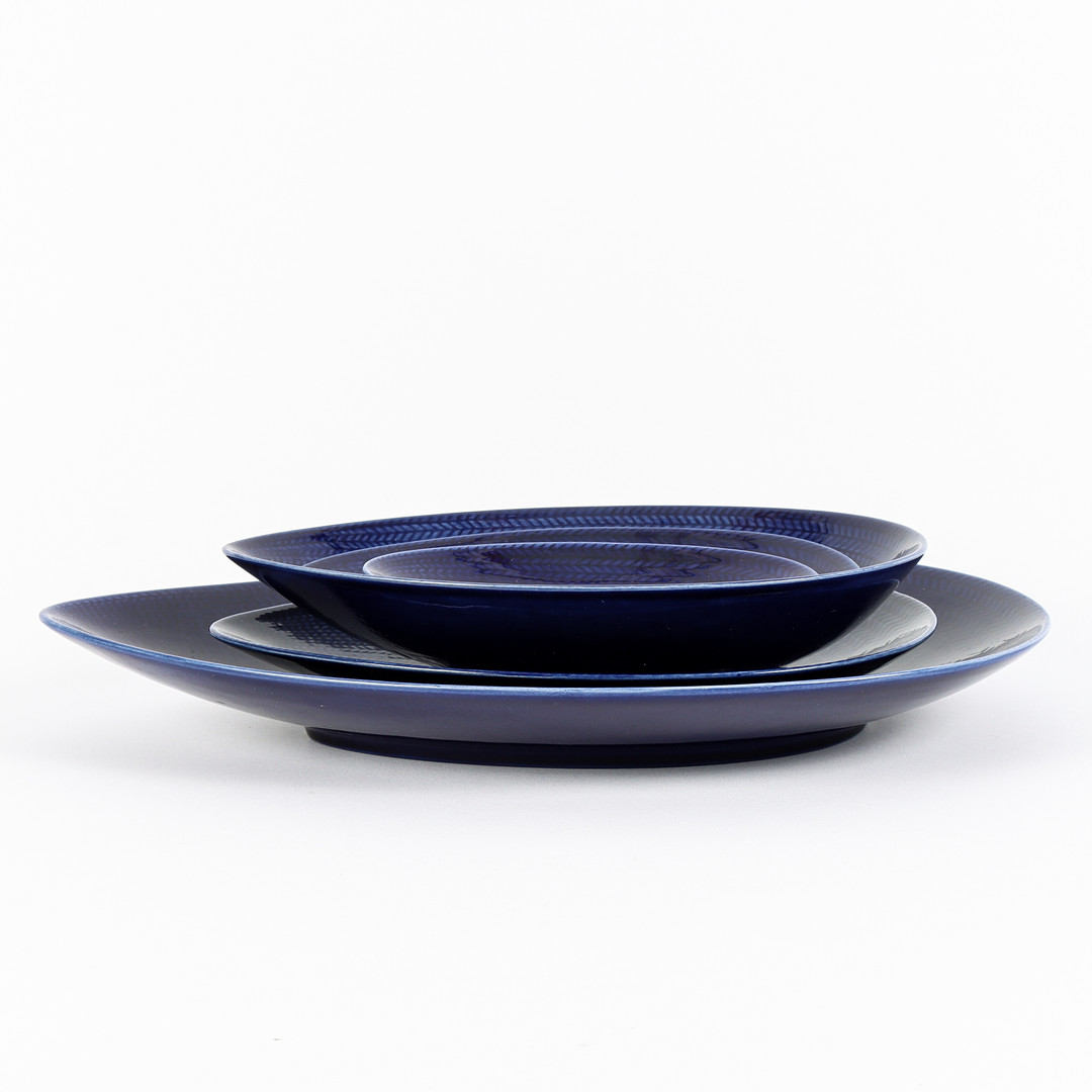 4955116. HERTHA BENGTSON. Serveringsfat 5 stycken, Rörstrand, Blå Eld.