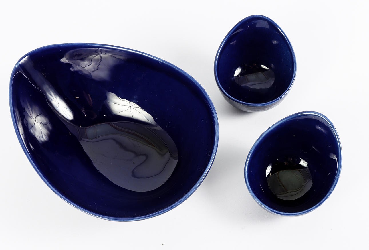 4955139. HERTHA BENGTSON. Skålar, 3 stycken, Rörstrand, Blå Eld.