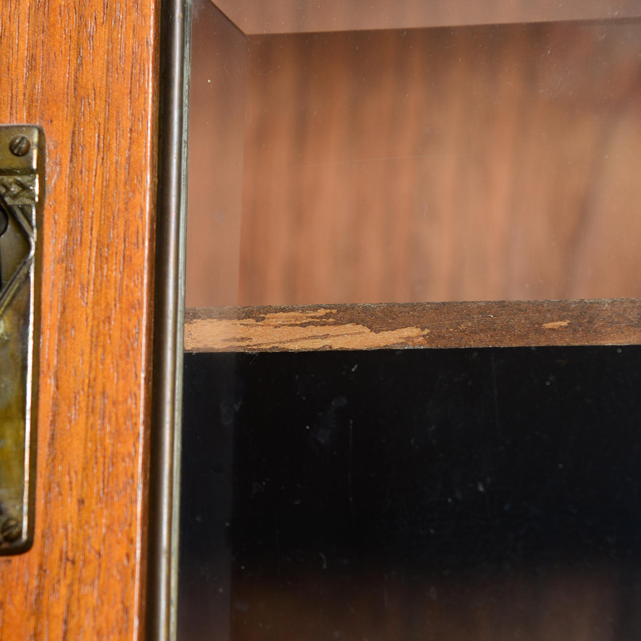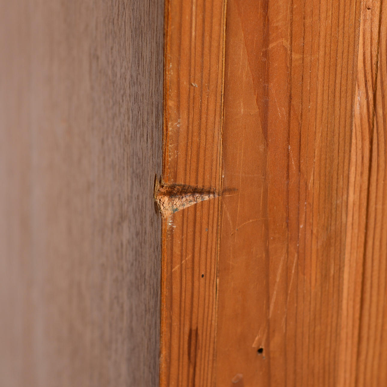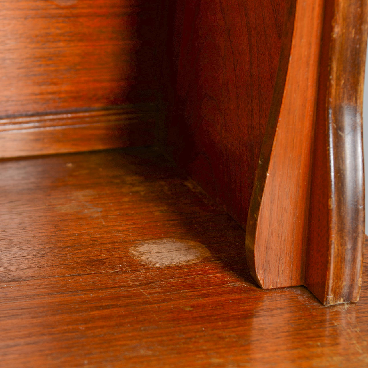 Lös list vid underskåp. Märken, fuktfläckar, repor.