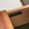 Bruksslitage, ommålat bakstycke, fläckar / märken förekommer, mindre fanérskada på ovansidan.