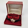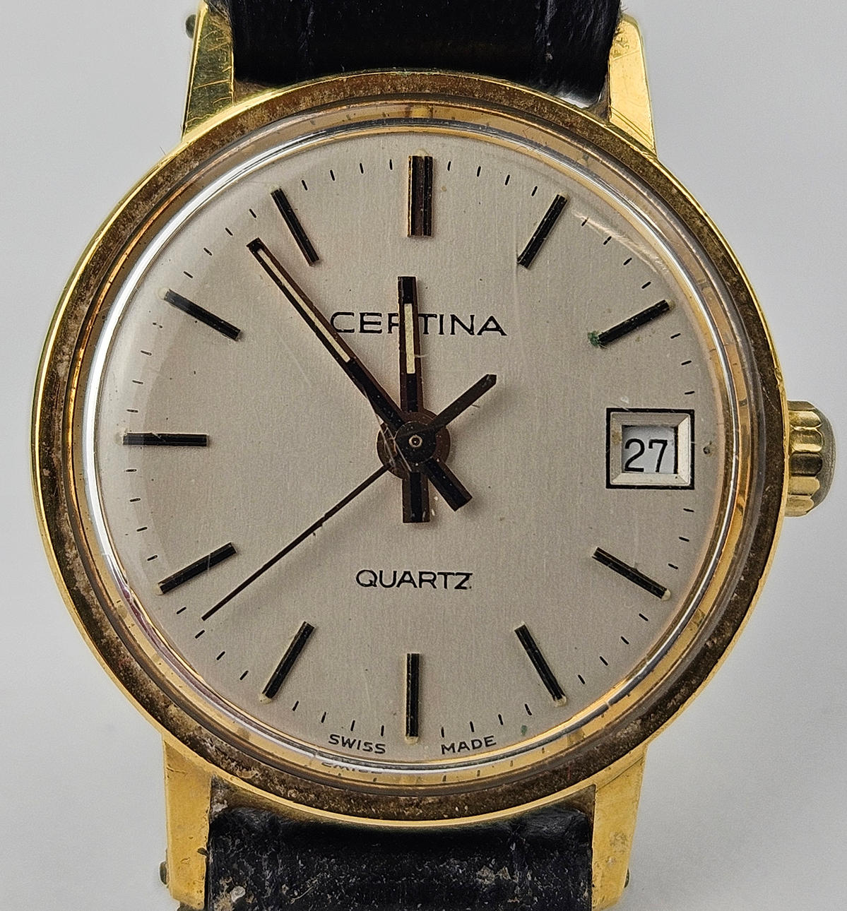 I etui. Quartz, datum, läderarmband. Ca. 22 mm.