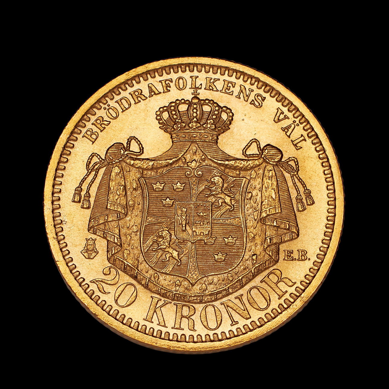 GULDMYNT, Oscar II, 20 kr, 1899.