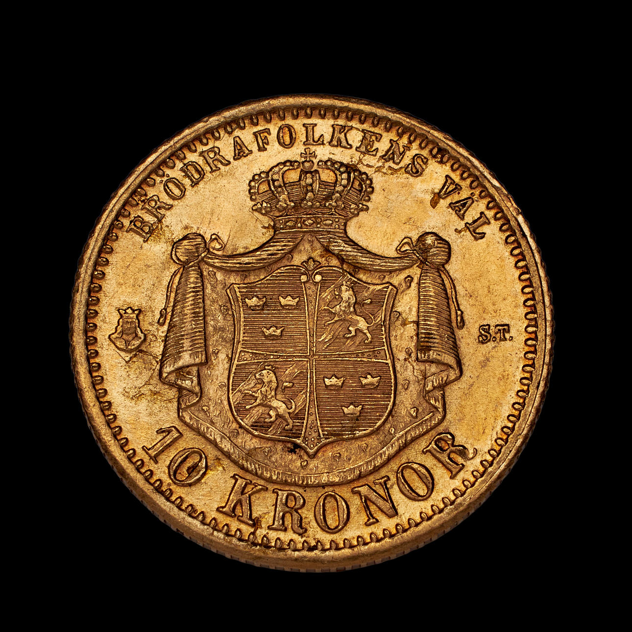 GULDMYNT, Oscar II, 10 kr, 1874.