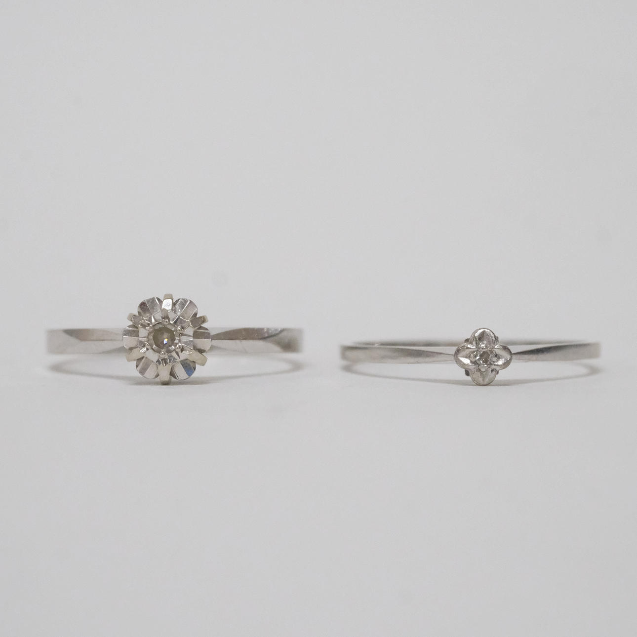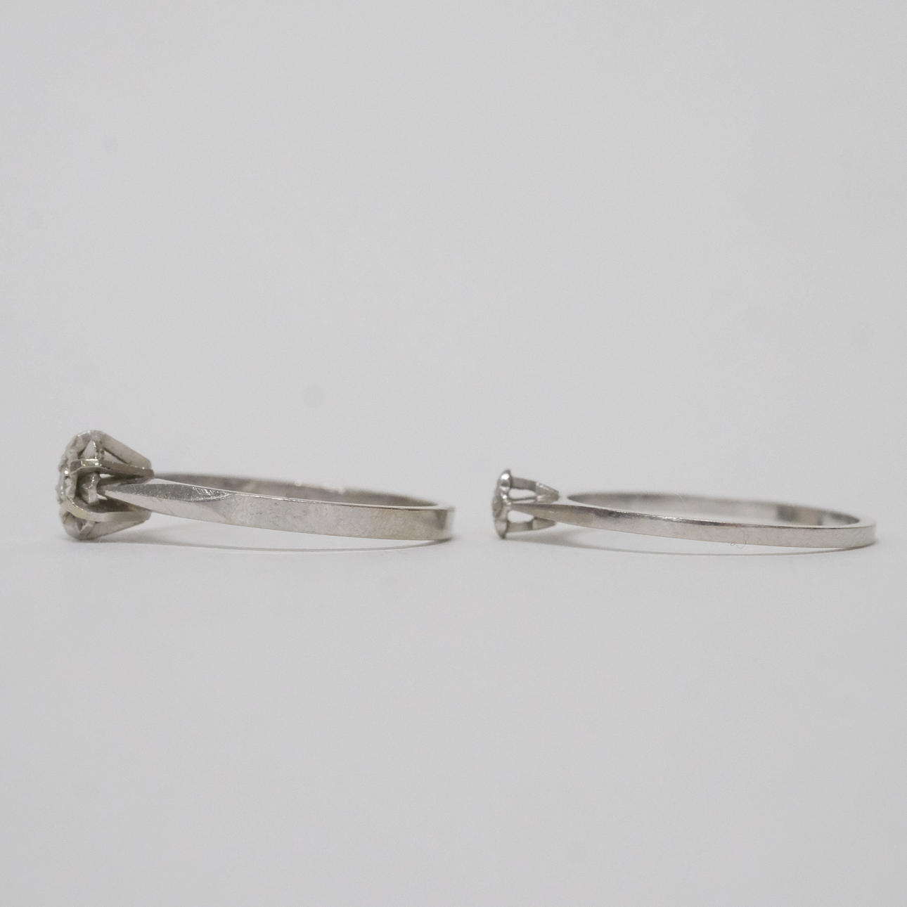 4956552. RING MED DIAMANTER, 18K VITGULD, TVÅ STYCKEN.