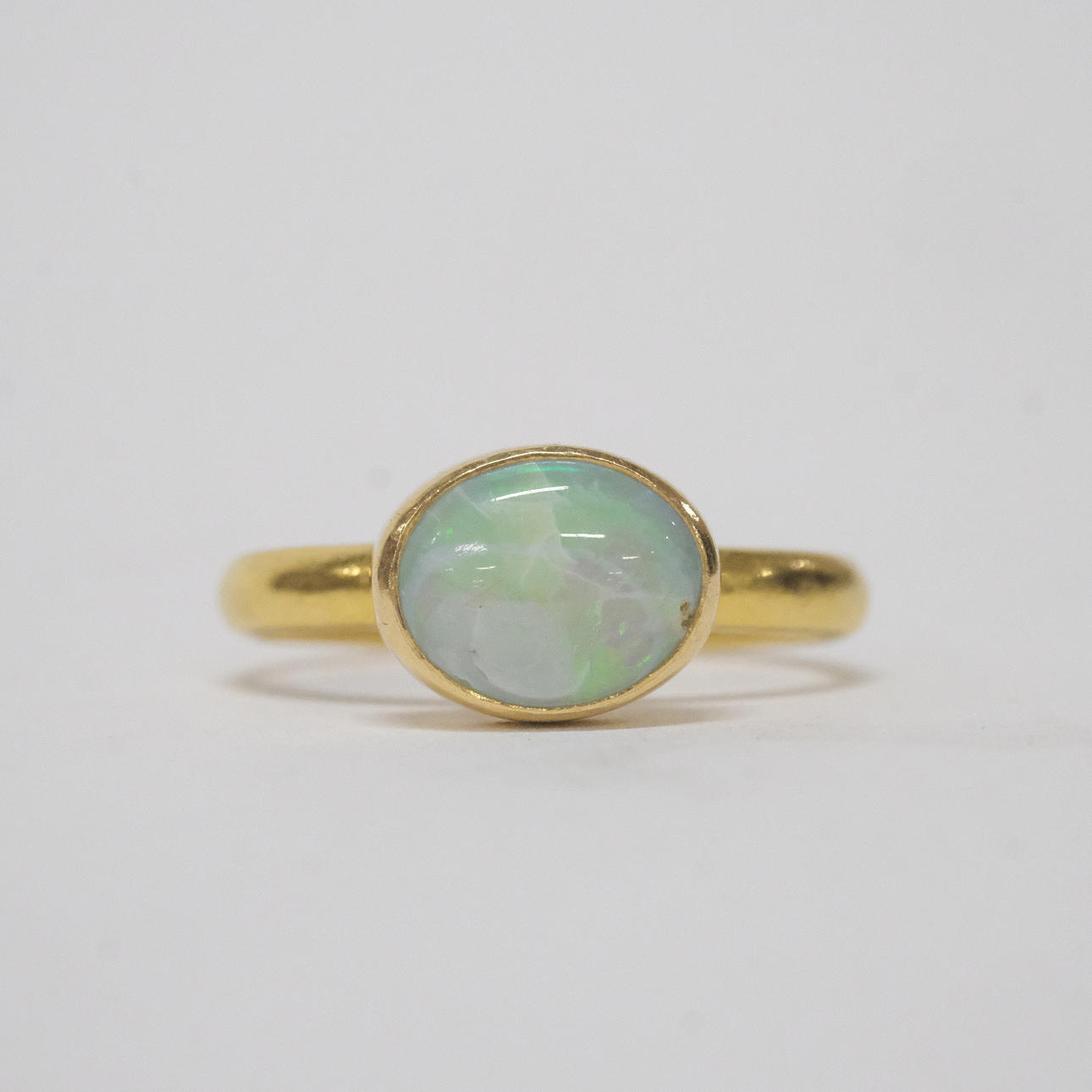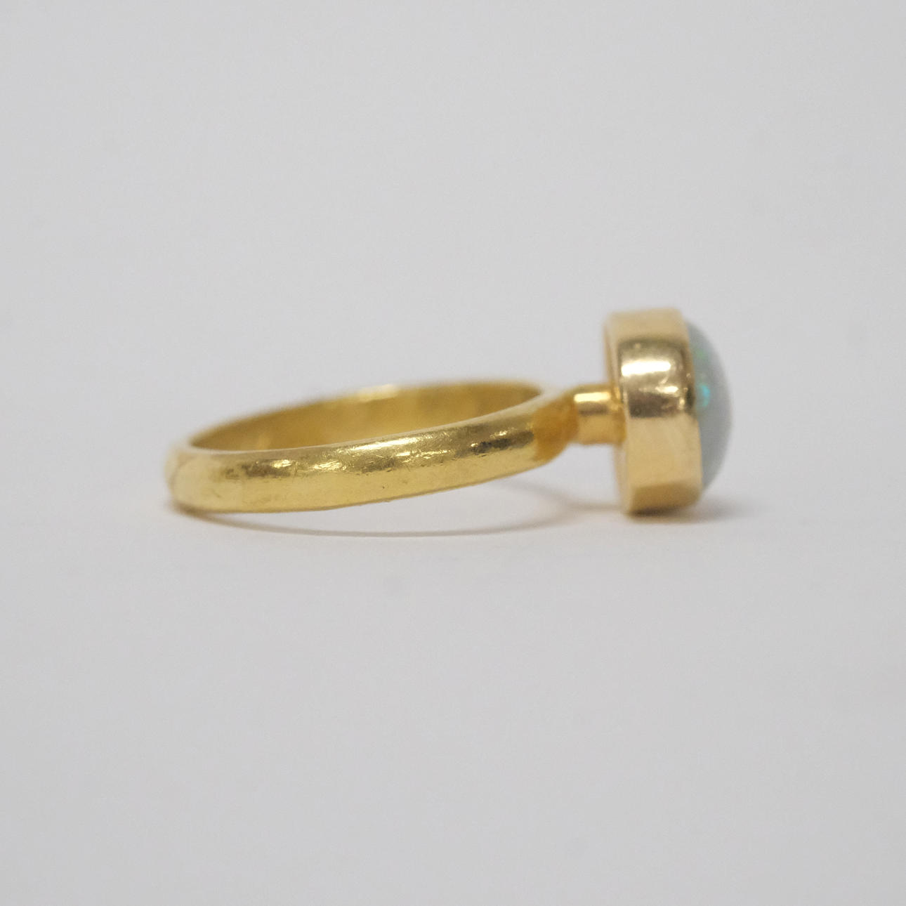 Mindre bruksrepor. Opal med nagg och sprickor. Möjligen omarbetad. Gravyr.