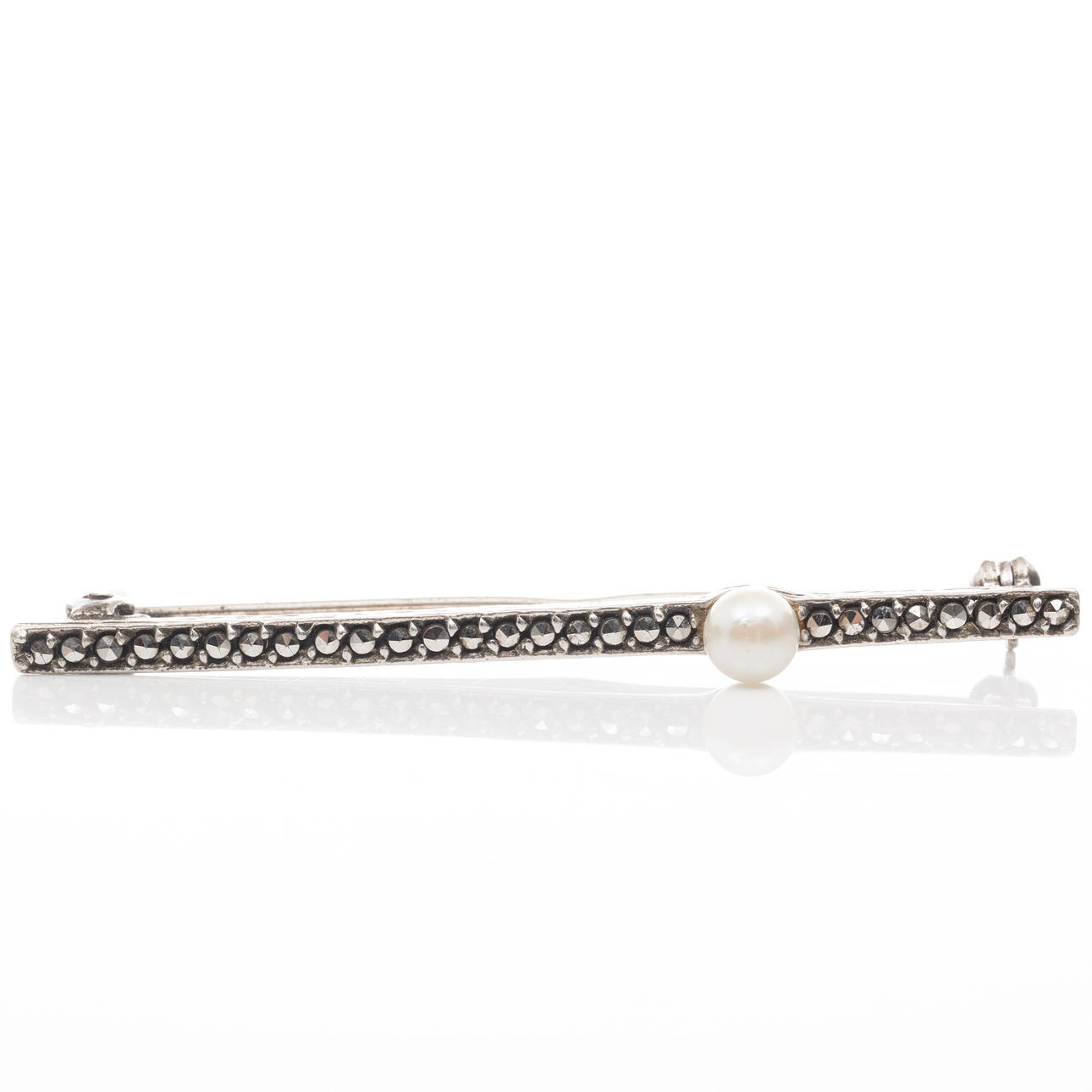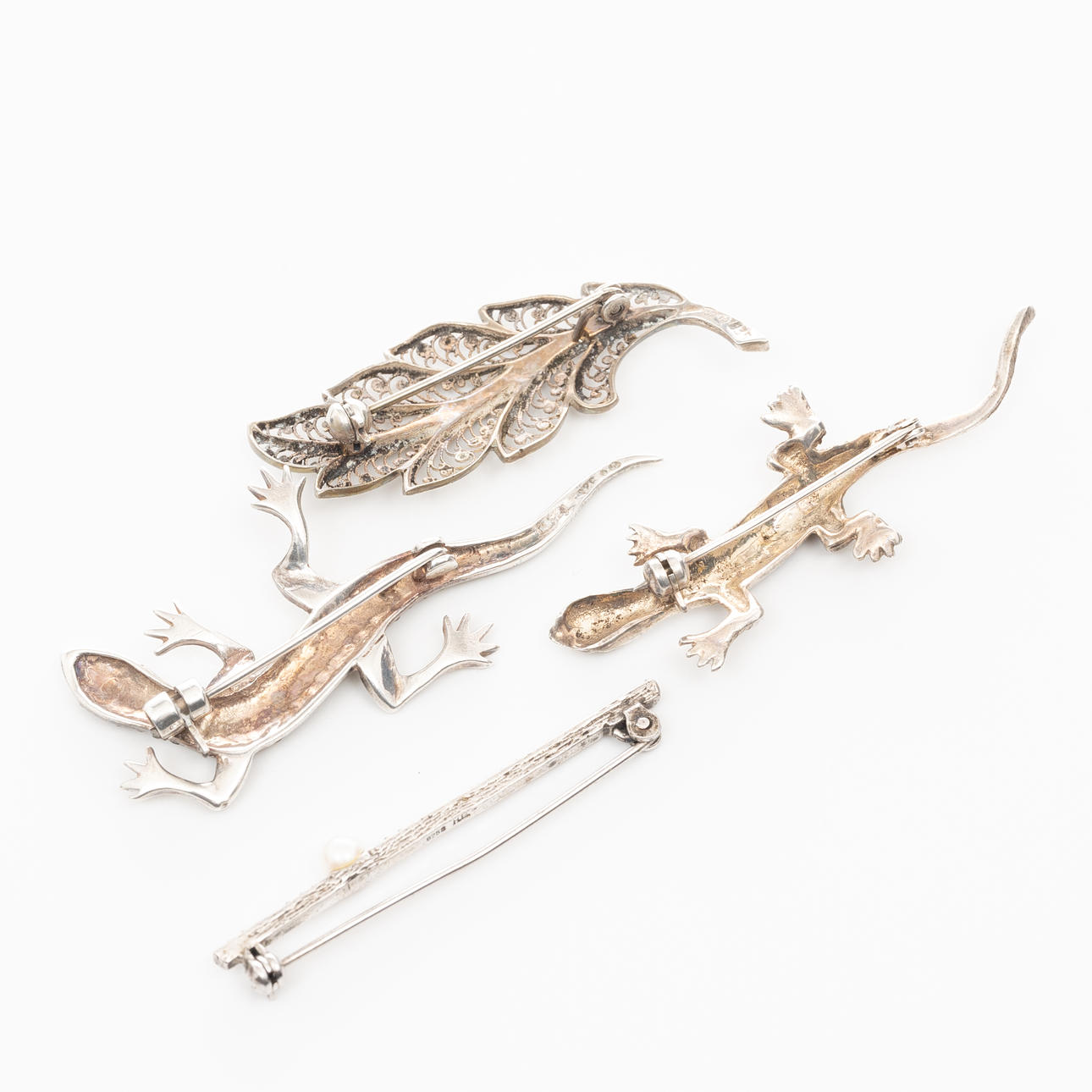 BROSCHER, 4 st, Silver, markasiter, Pärla.