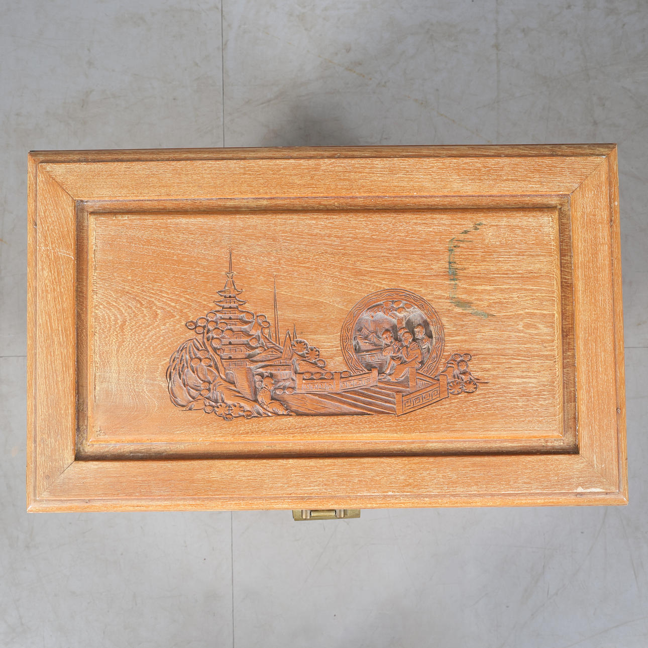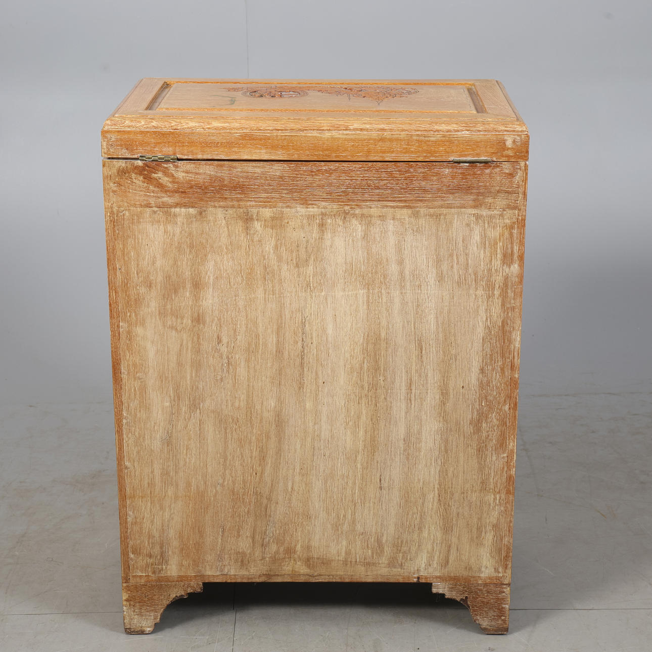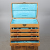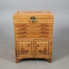 Mått ca 79x59x36 cm, trädekor, beslag mässing. Lådor och skåpsdel.