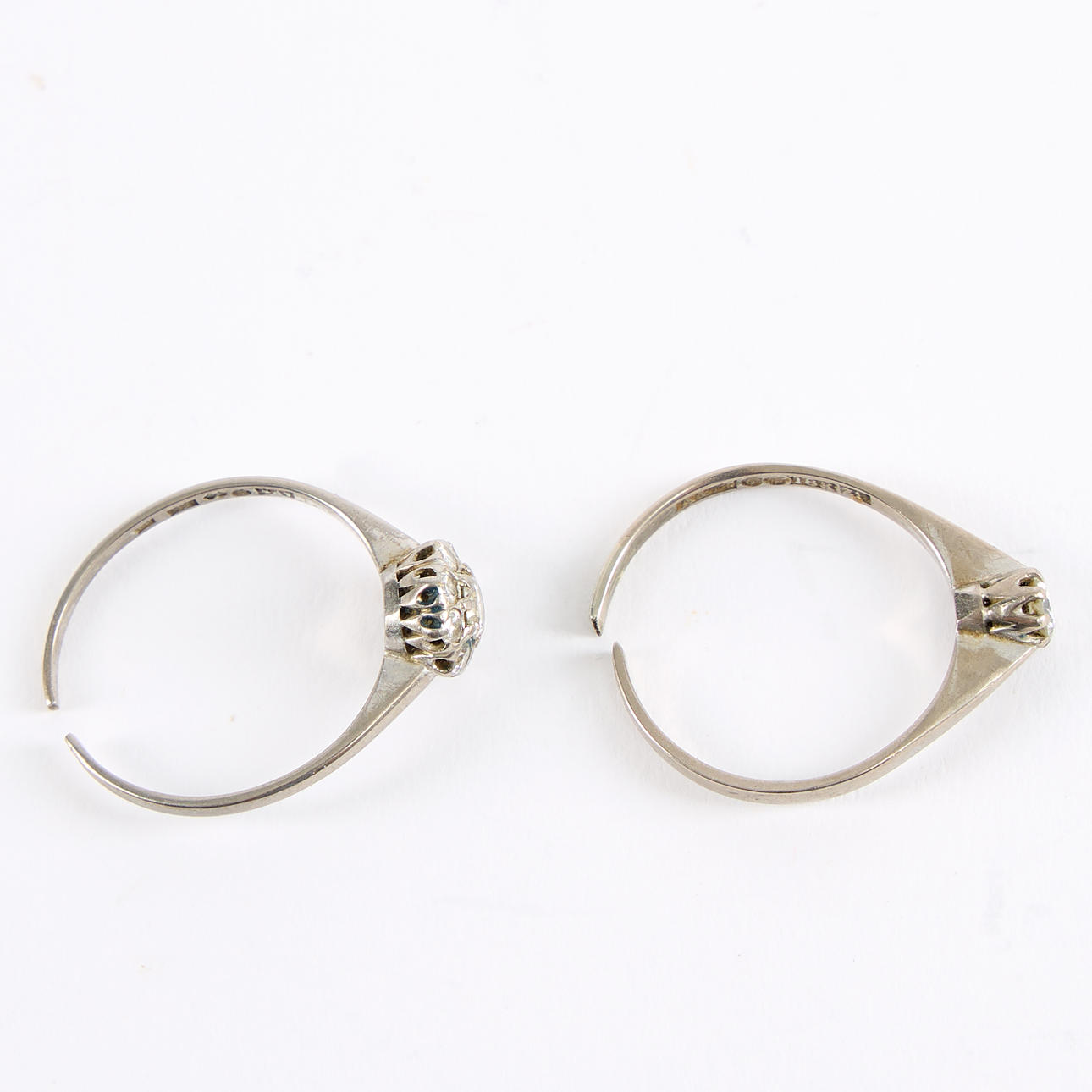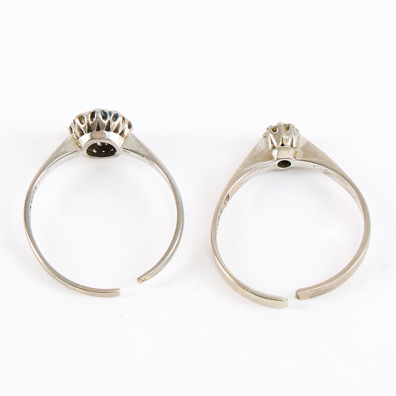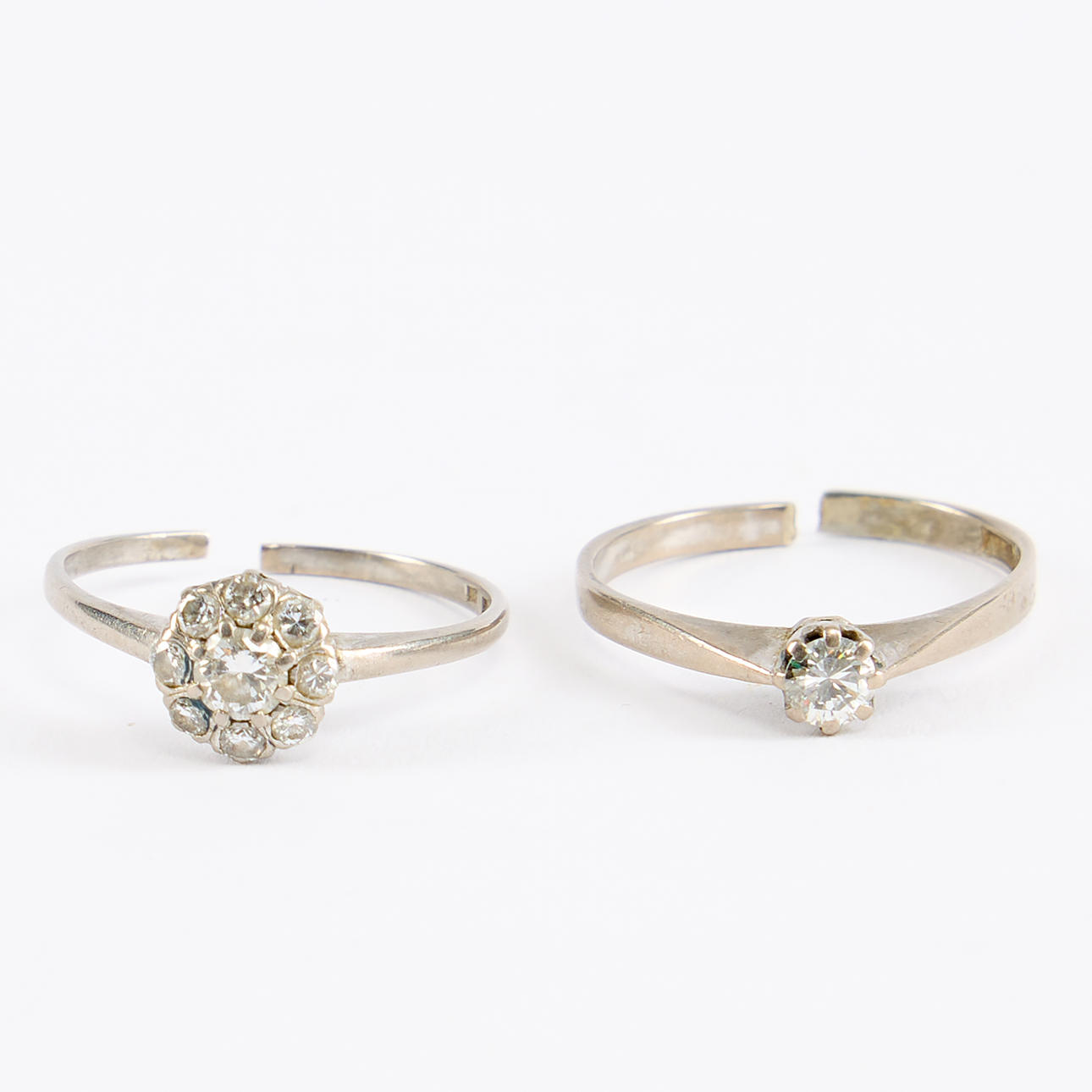 Carmoséring med totalt ca 0,3 ctv samt enstensring med diamant 0,2 ct (enligt gravyr. Ø ca 18, båda uppklippta. Vikt ca 5,4 gram.