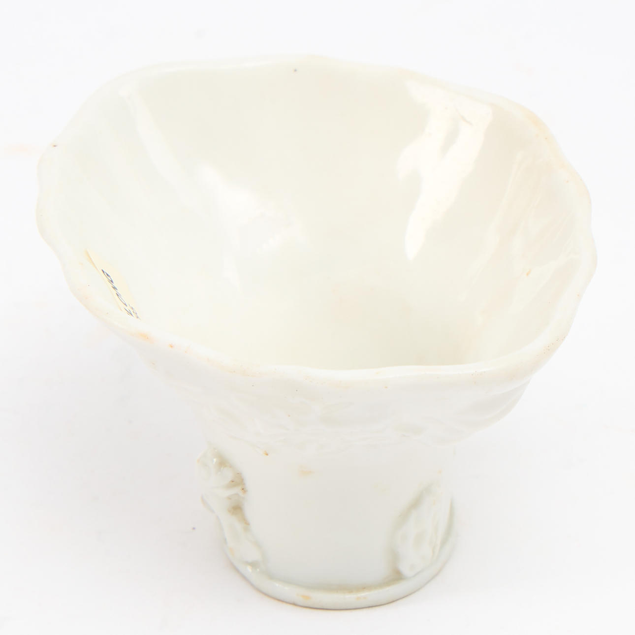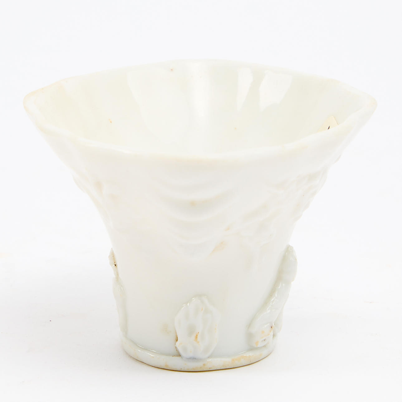 Blanc de Chine dekor i relief av träd och djur, H. 5,5 cm.