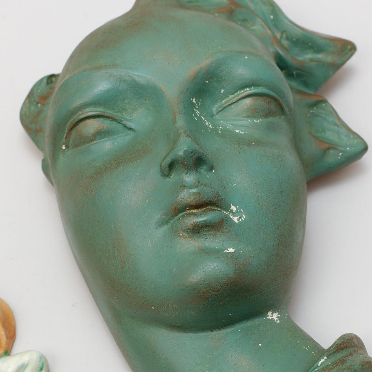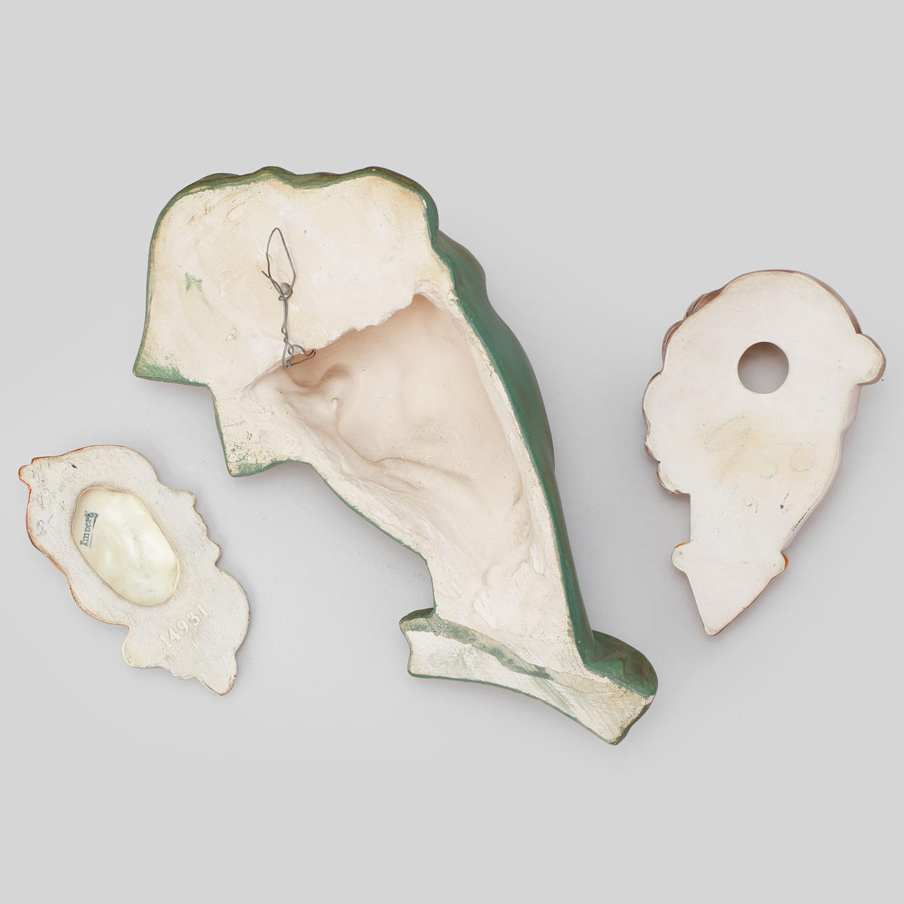 4957785. VÄGGRELIEFER, 3 st, porslin och gips.