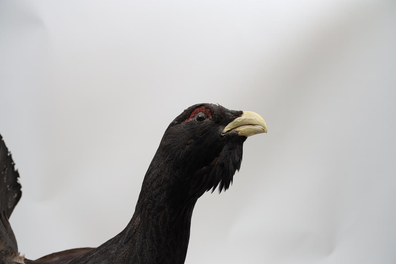 JAKTTROFÉ, Tjäder, monterad på trädgren.