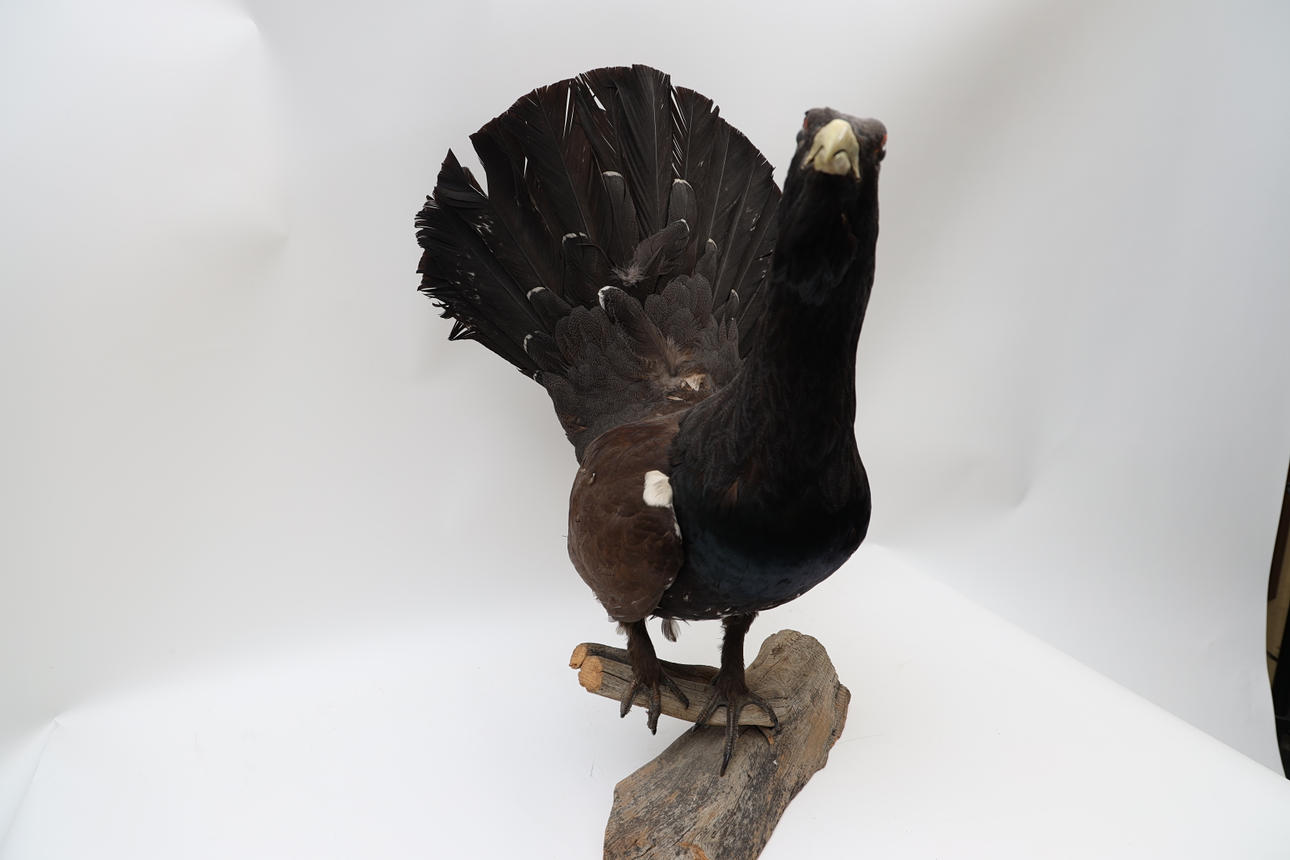 4957910. JAKTTROFÉ, Tjäder, monterad på trädgren.