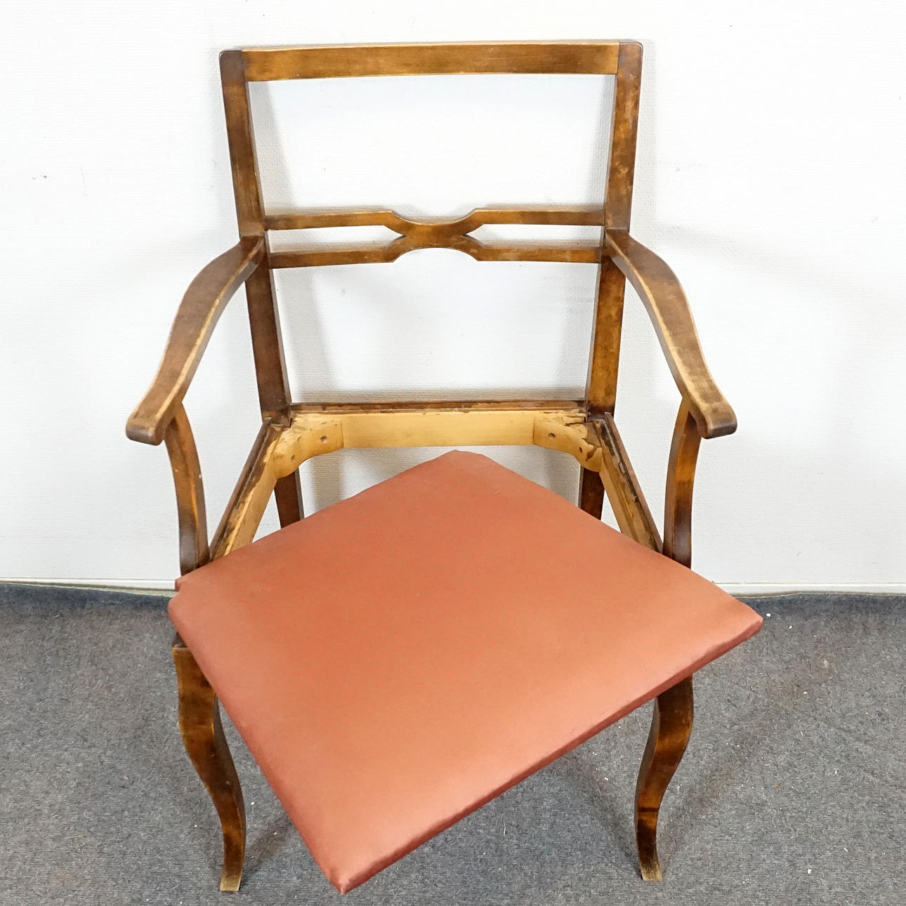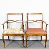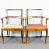 Karmstolar i bonad björk, tyg klädd sitts.