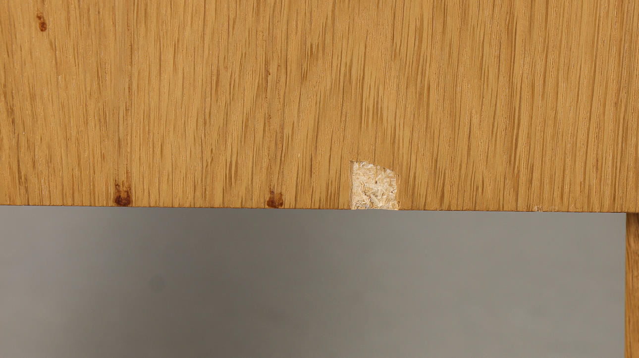 Liten fanerskada på ena sidan.