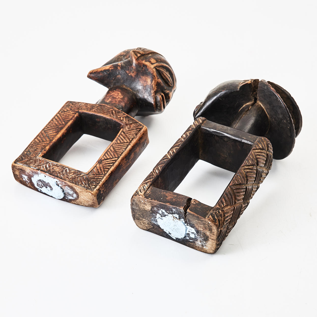 4958517. KATATORA, 2 stycken, Luba, Kongo, 1900-tal, skulpterade i trä.