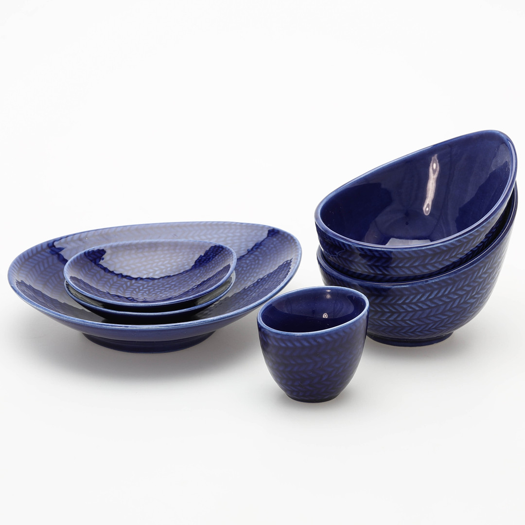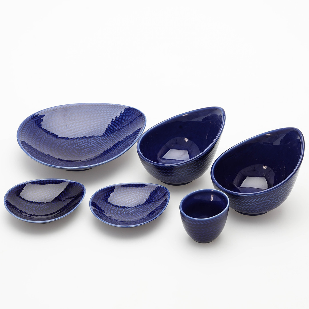 4958690. HERTHA BENGTSON. Servisdelar, 6 delar, "Blå Eld", Rörstrand.