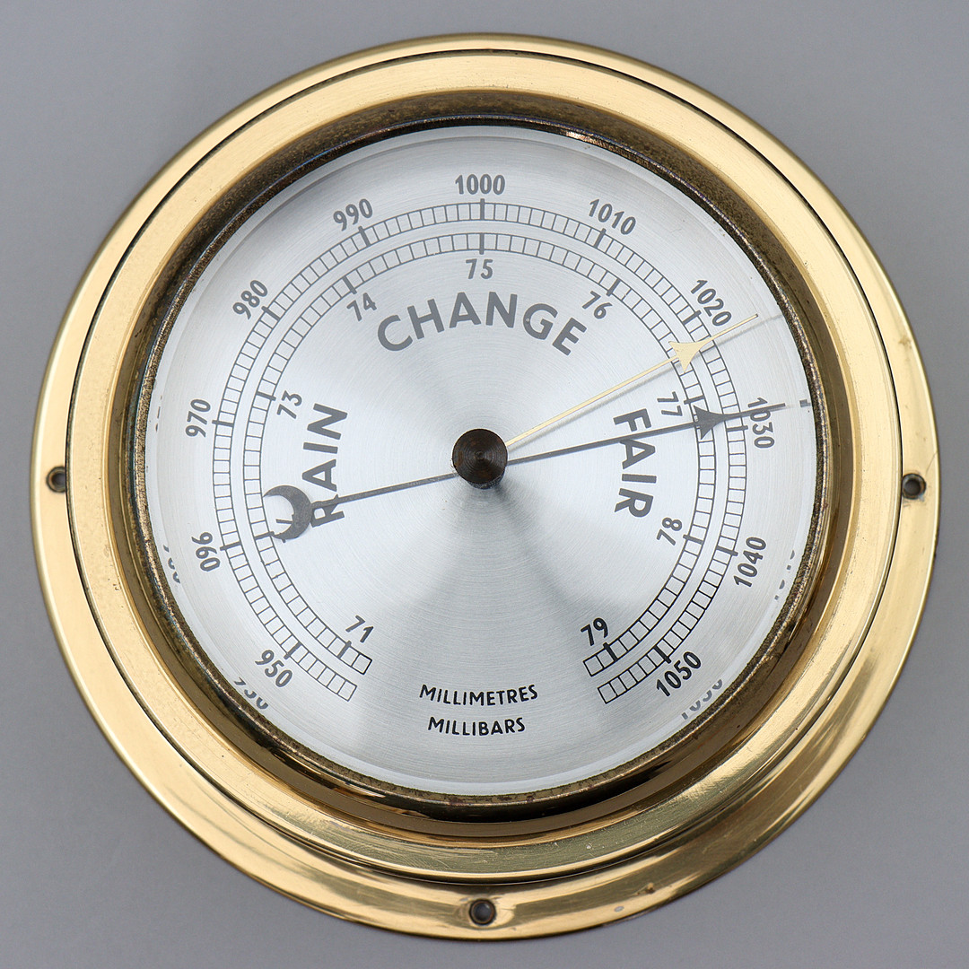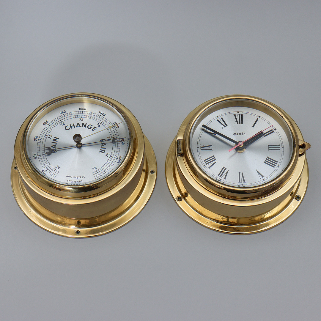 4958907. SKEPPSKLOCKA SAMT BAROMETER, MÄSSING, 1900-TAL.